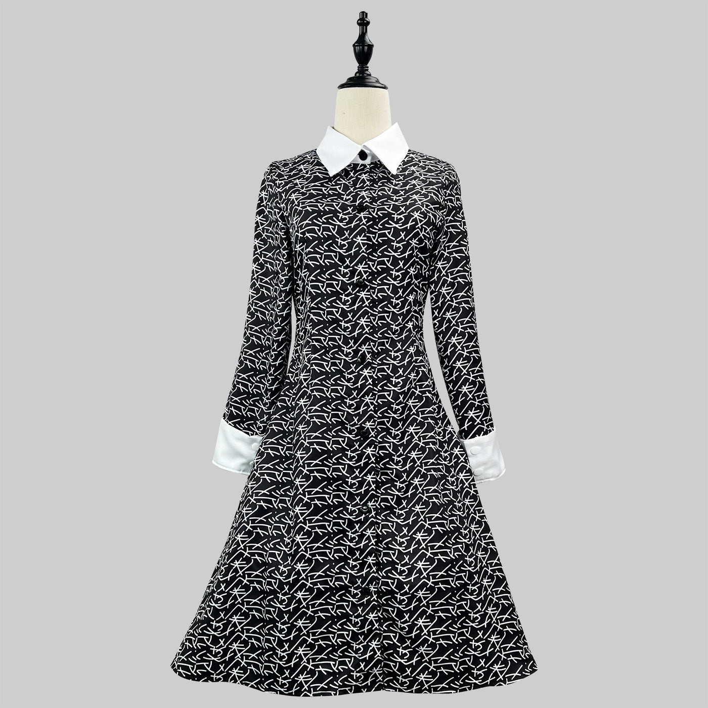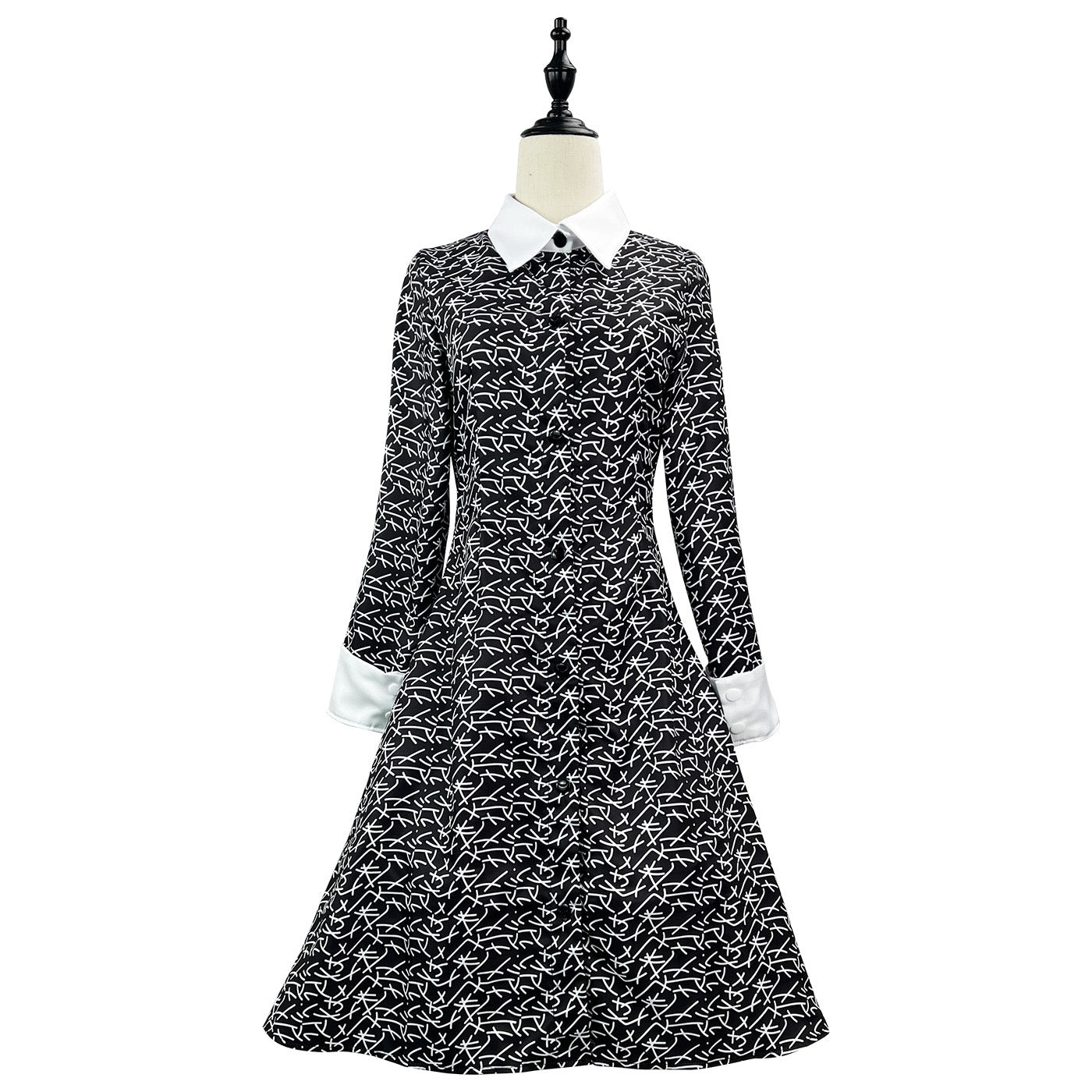 The Adams family cosplay costume Halloween Wednesday Adams black printed dress cosplay costume anime style