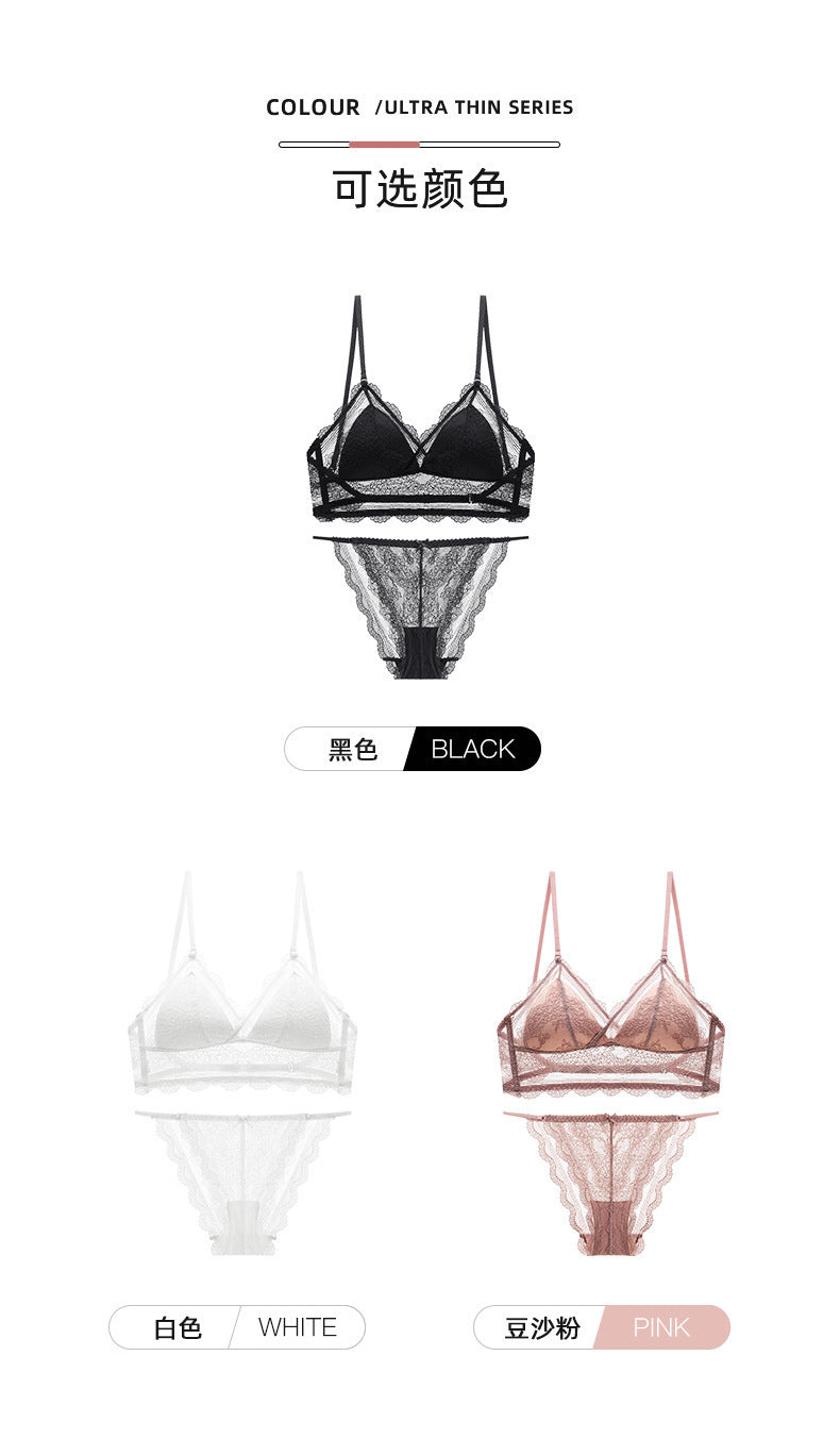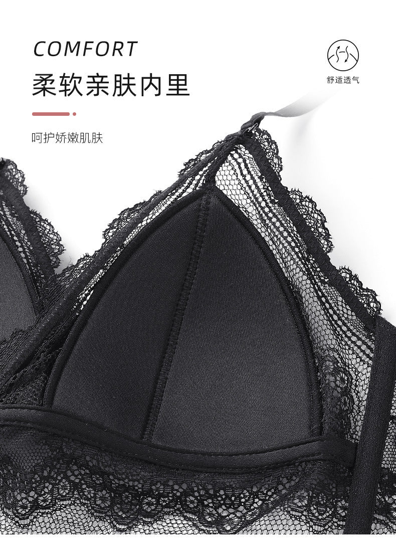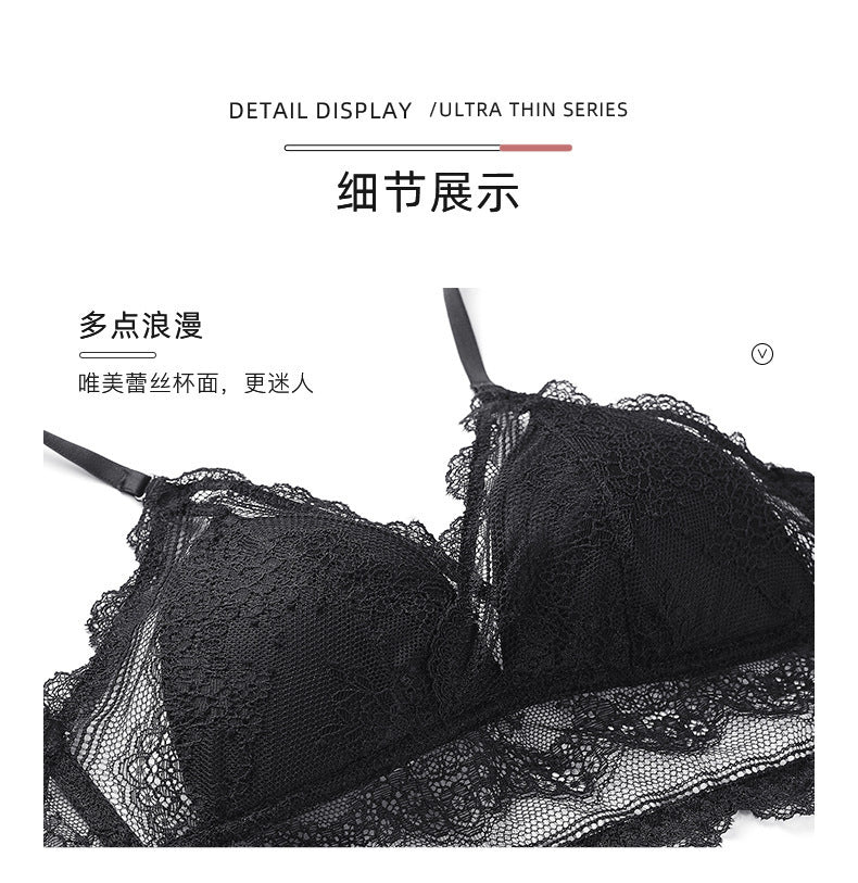 Sexy lace ultra-thin non-padded transparent bra set for women, lingerie for large breasts, makes them appear smaller.