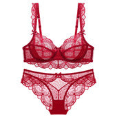Factory wholesale and dropshipping of court-style vine jacquard lace half-cup bra sets with thin cotton cups for your birth year.