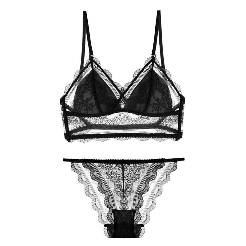 Sexy Lace Ultra-Thin Transparent Unpadded Half-Cup Bra Set