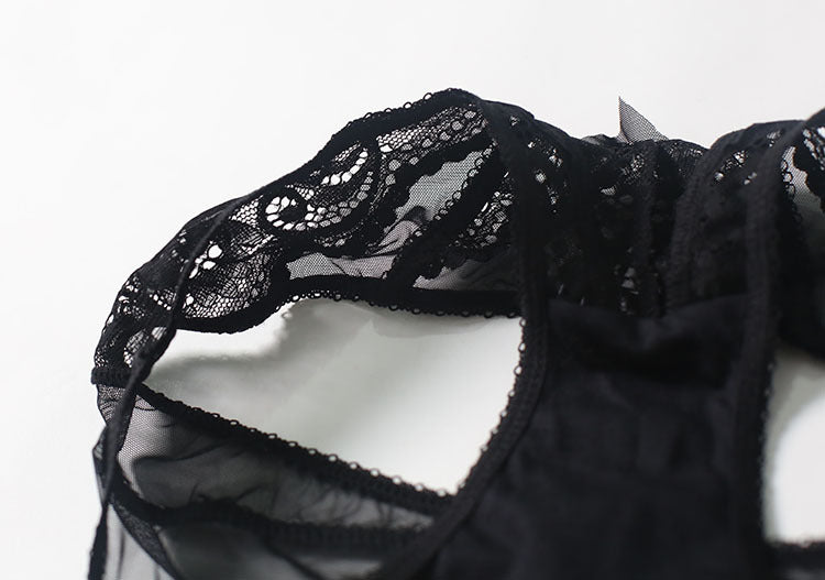 French-style sexy bodysuit, alluring transparent lace, European and American style tight-fitting sexy bodysuit