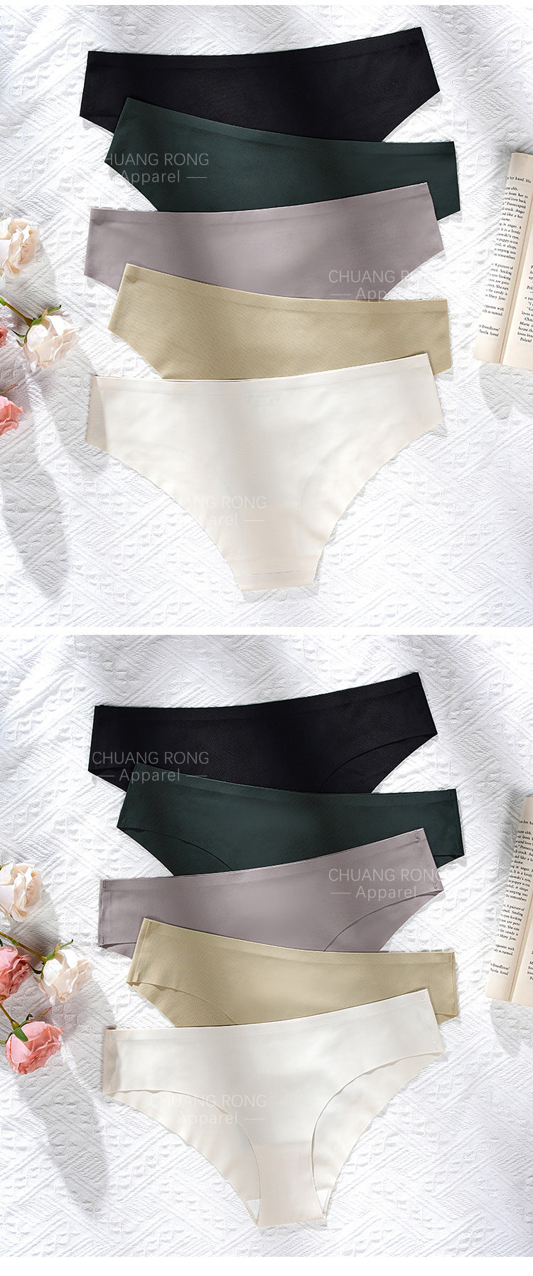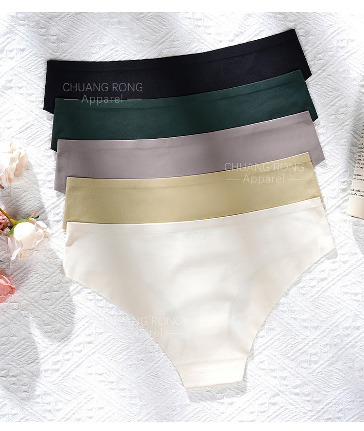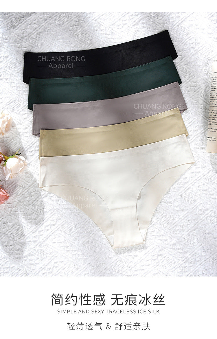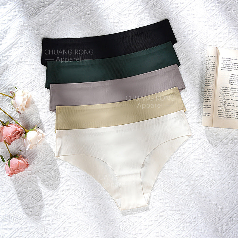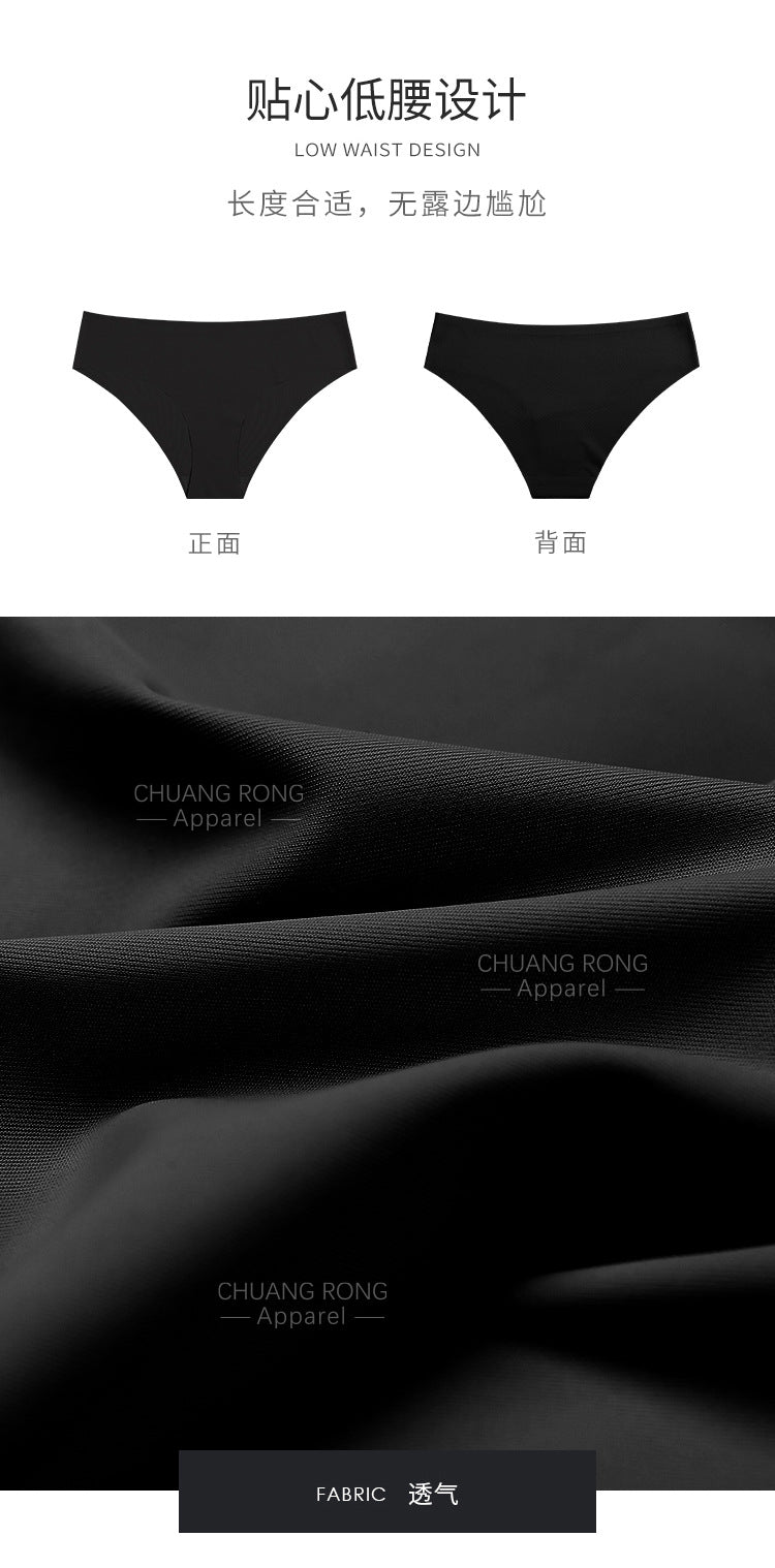 Sexy seamless plus-size women's underwear with folded edges, high-quality low-rise ice silk breathable skin-friendly yoga briefs.