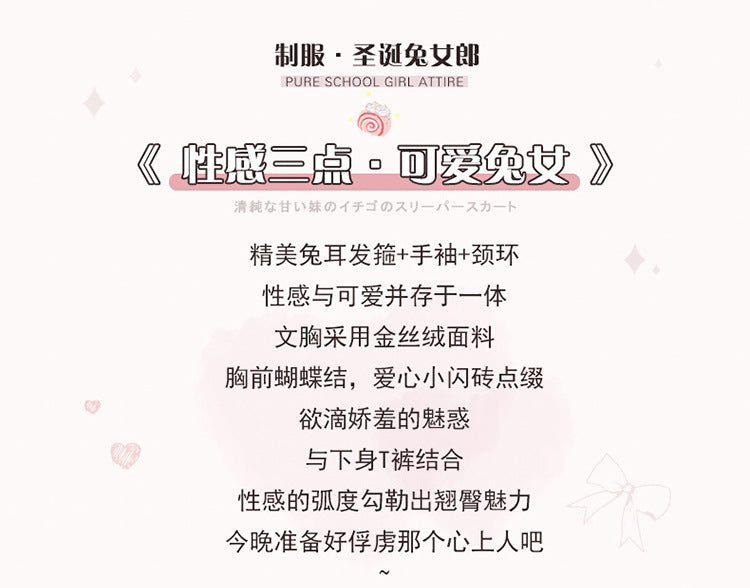 Sexy Bunny Girl Lingerie Three-Piece Lingerie Temptation Christmas Bra Passionate No-Removal Set 8243 Sex Cosplay