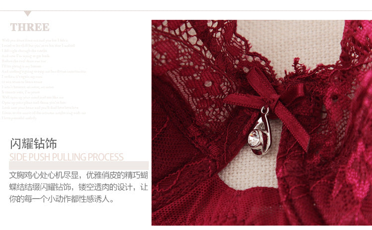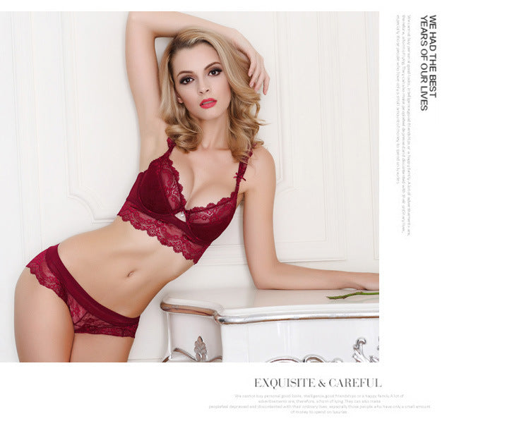 Thin, sexy lace bra set for women, lingerie that makes large breasts appear smaller, comfortable and breathable.