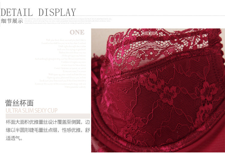 Sexy lace women's lingerie, comfortable thin plus size bra set