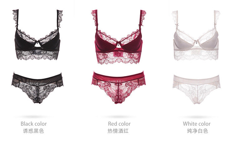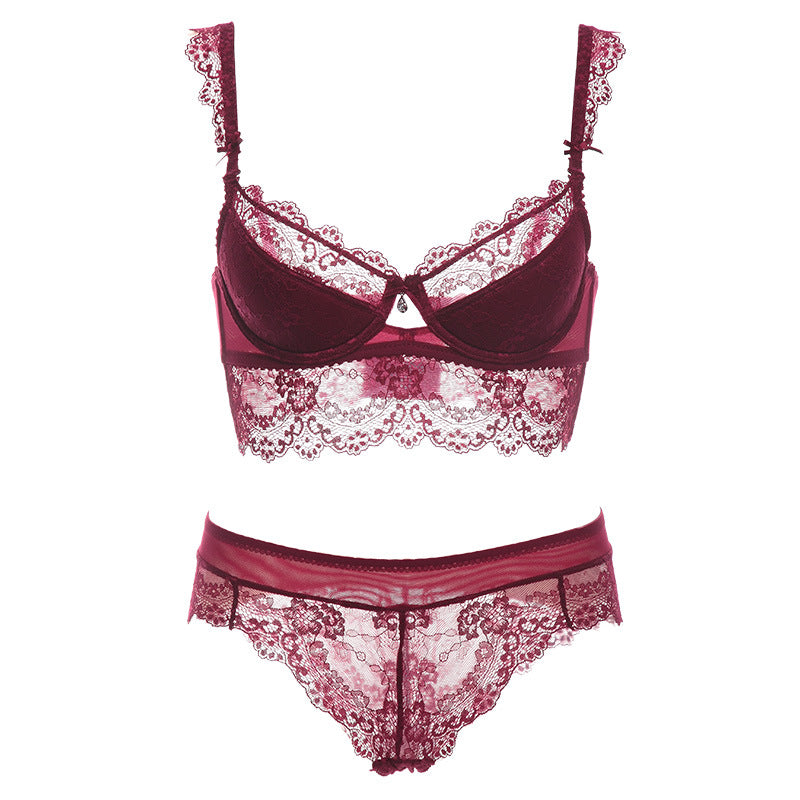 Sexy lace ultra-thin transparent unpadded half-cup bra set