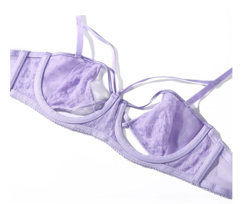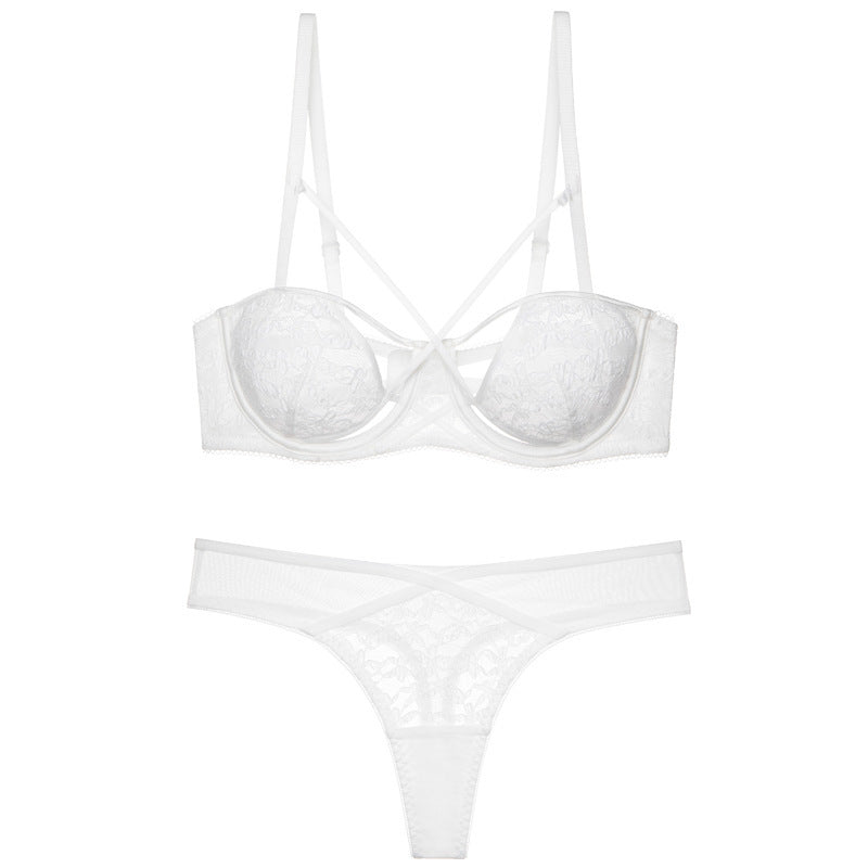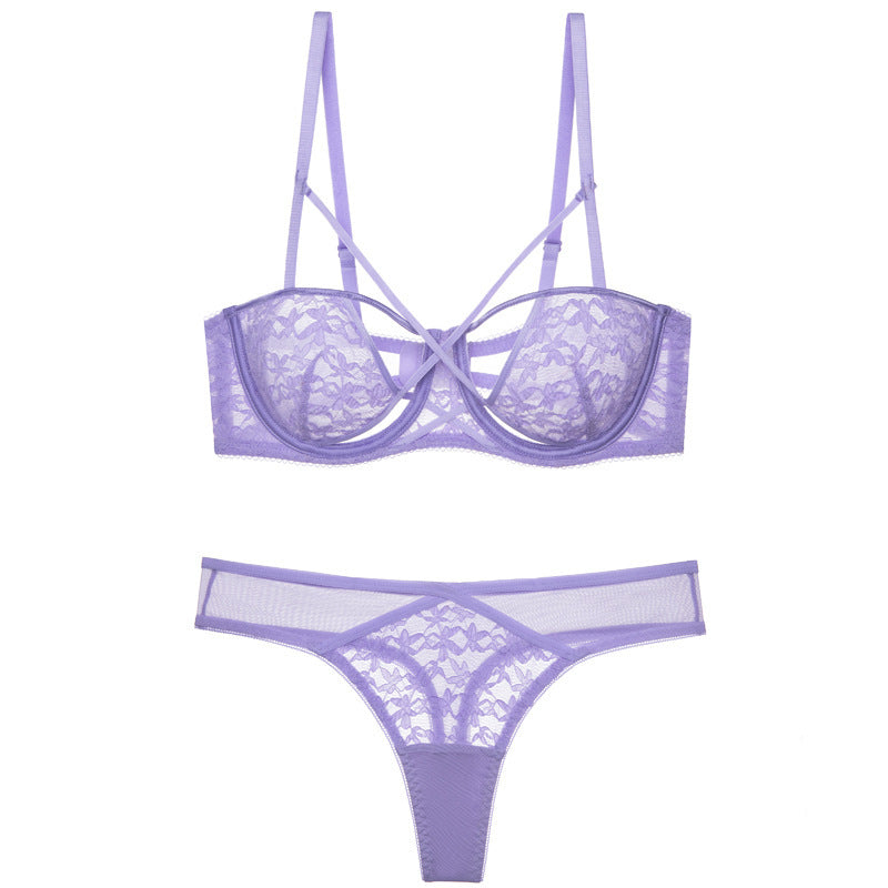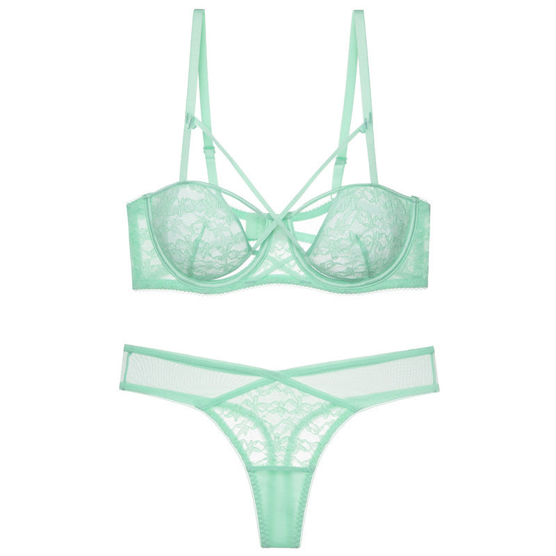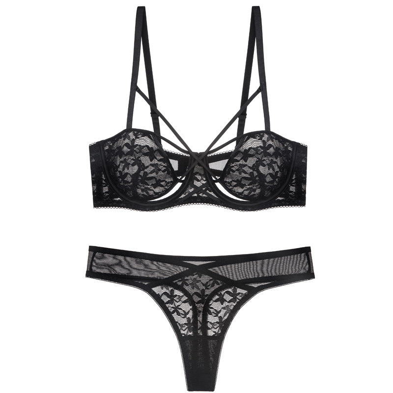 Sexy lace ultra-thin transparent unpadded half-cup bra set