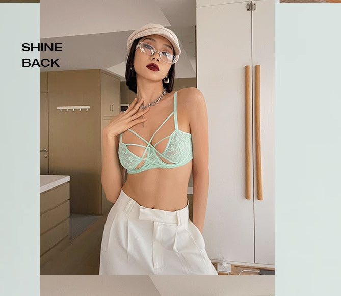 Sexy thin summer hollowed-out breathable lace triangle backless bra for women's underwear