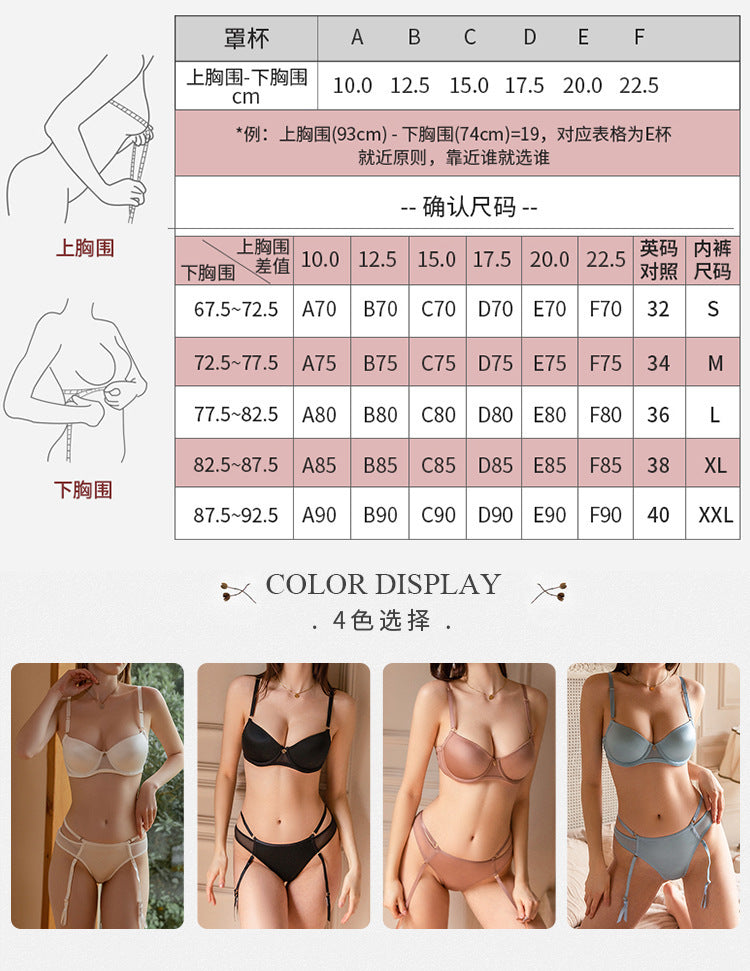 Deeply sexy bra and garter set, push-up and lift women's underwear garter belt