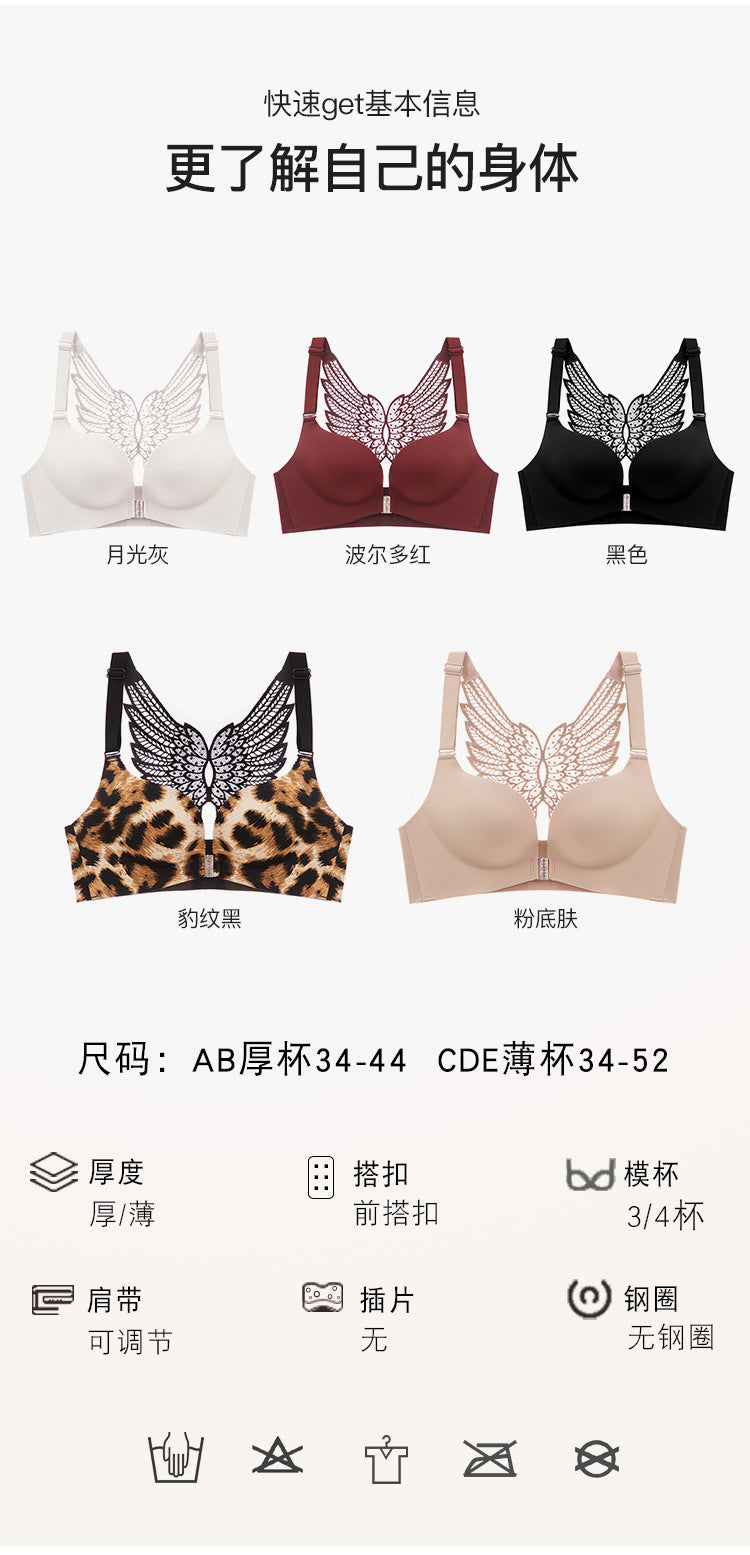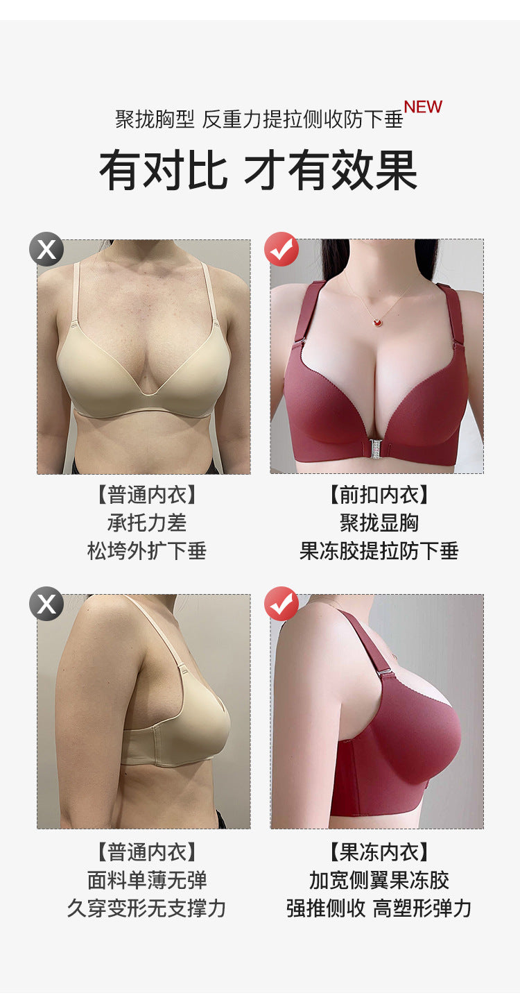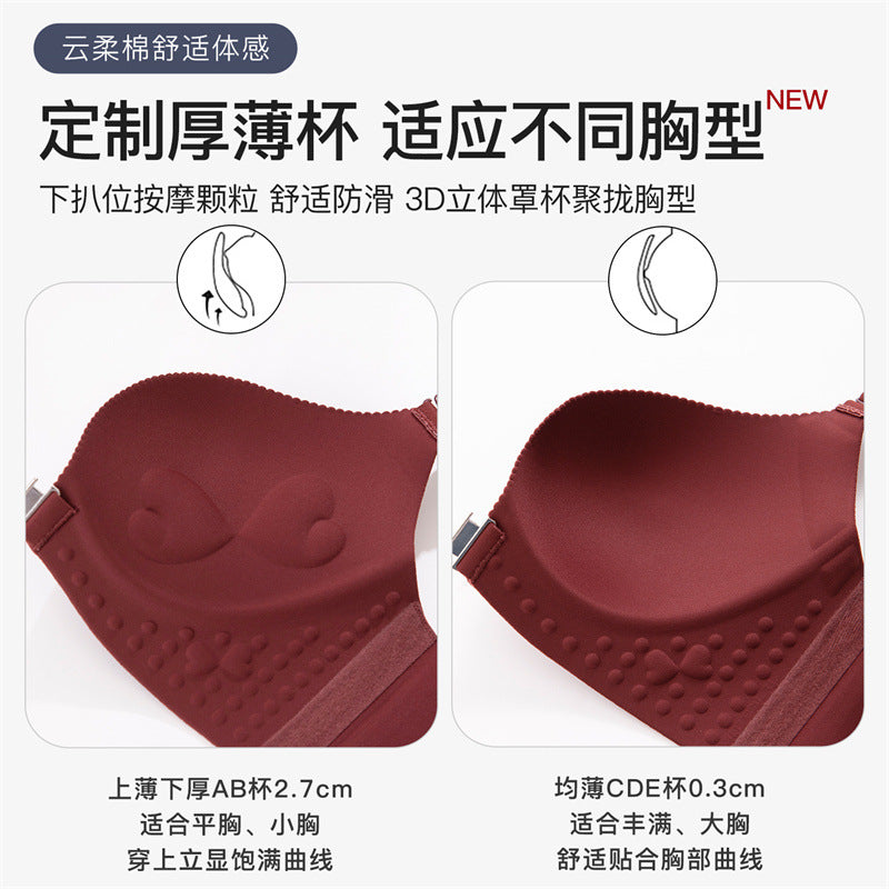 Seamless women's thin, convenient front-opening, wire-free, adjustable, anti-sagging, supportive, comfortable, and backless bra.