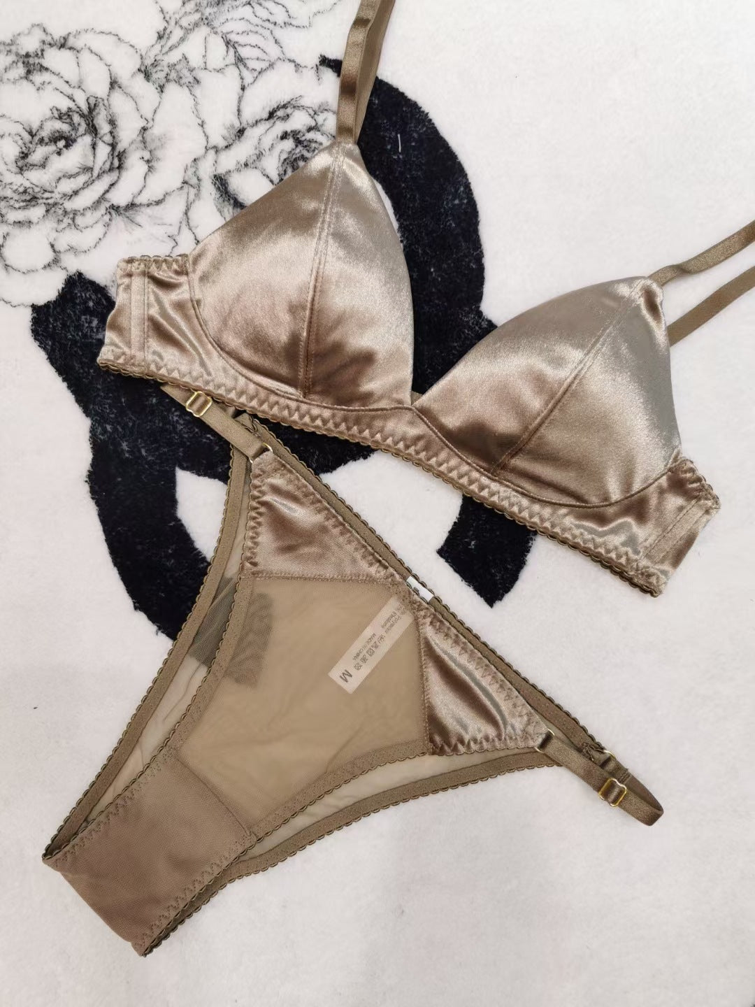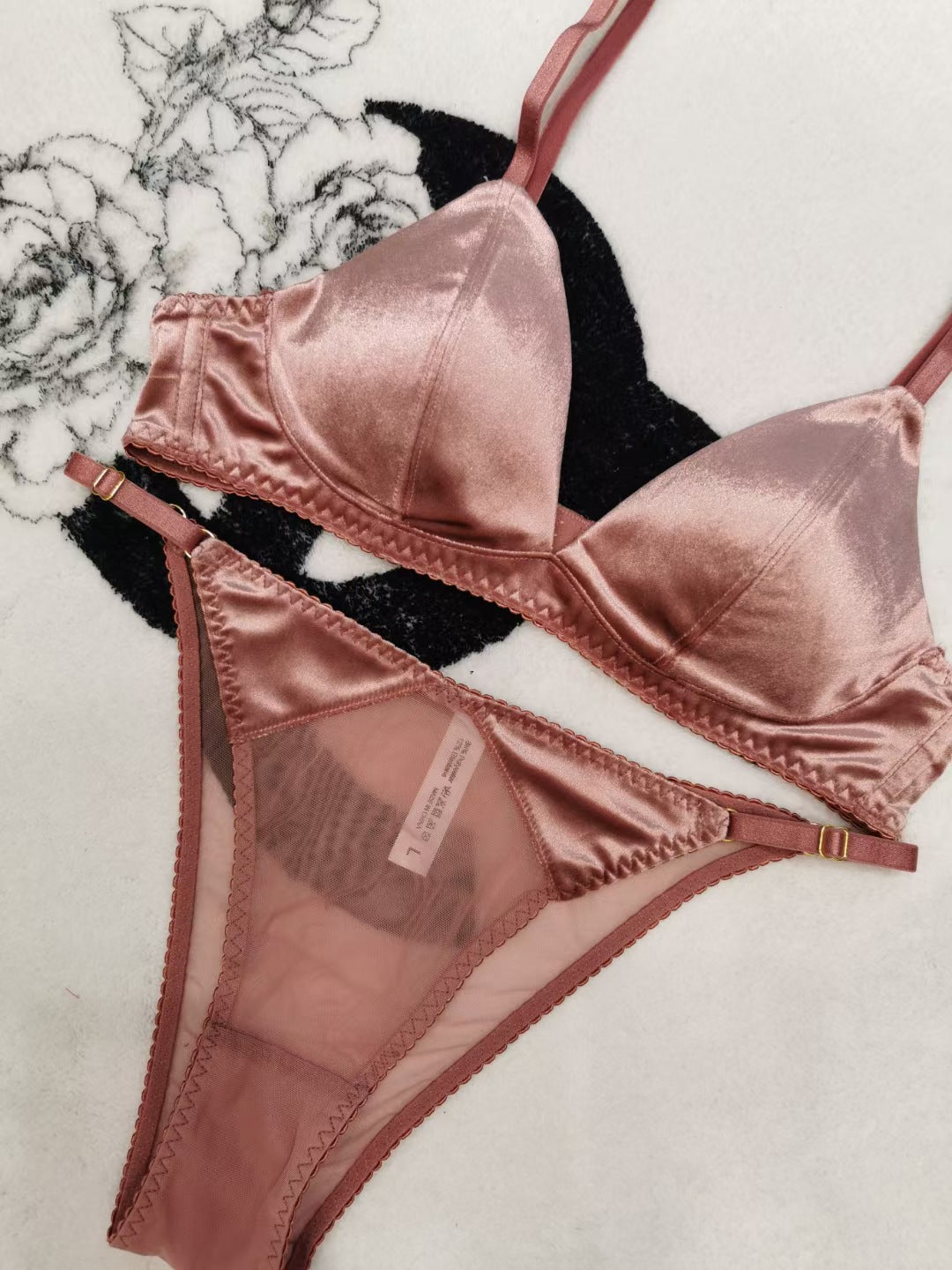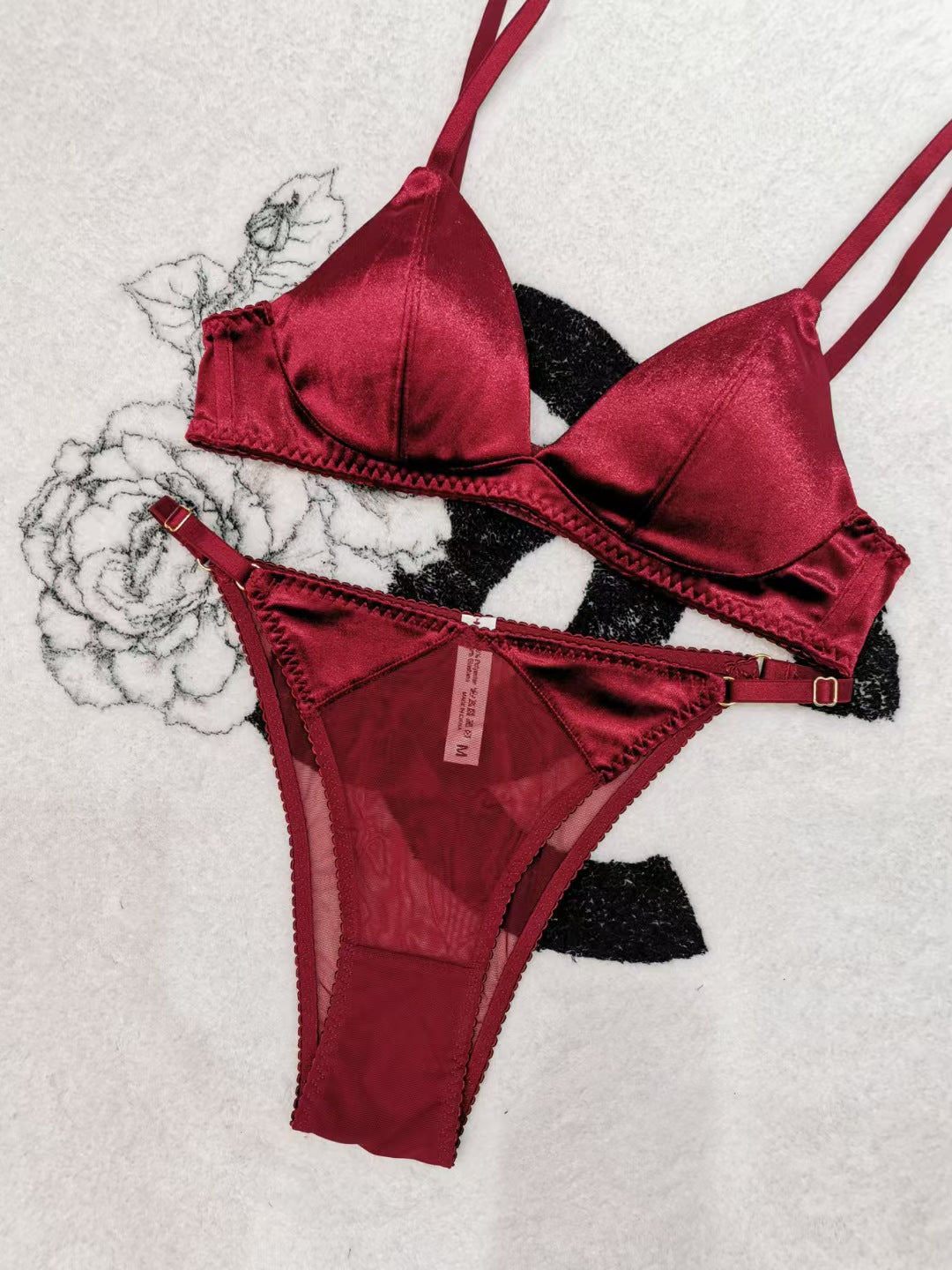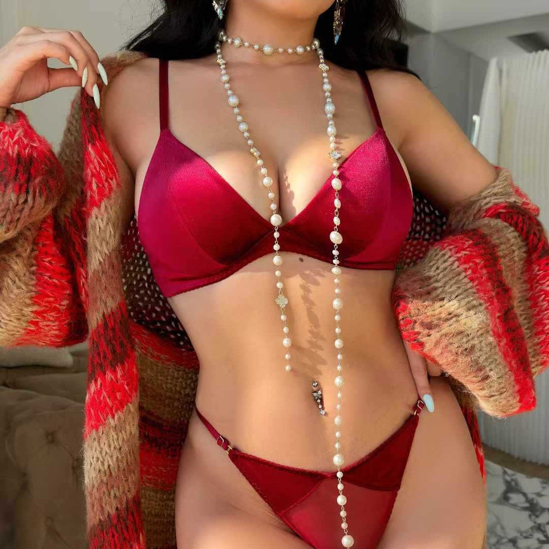 Red underwear set for your zodiac year, thin, seamless velvet, wire-free, triangle cup, sexy thong bra and panty set, flattering and minimizing bust size.