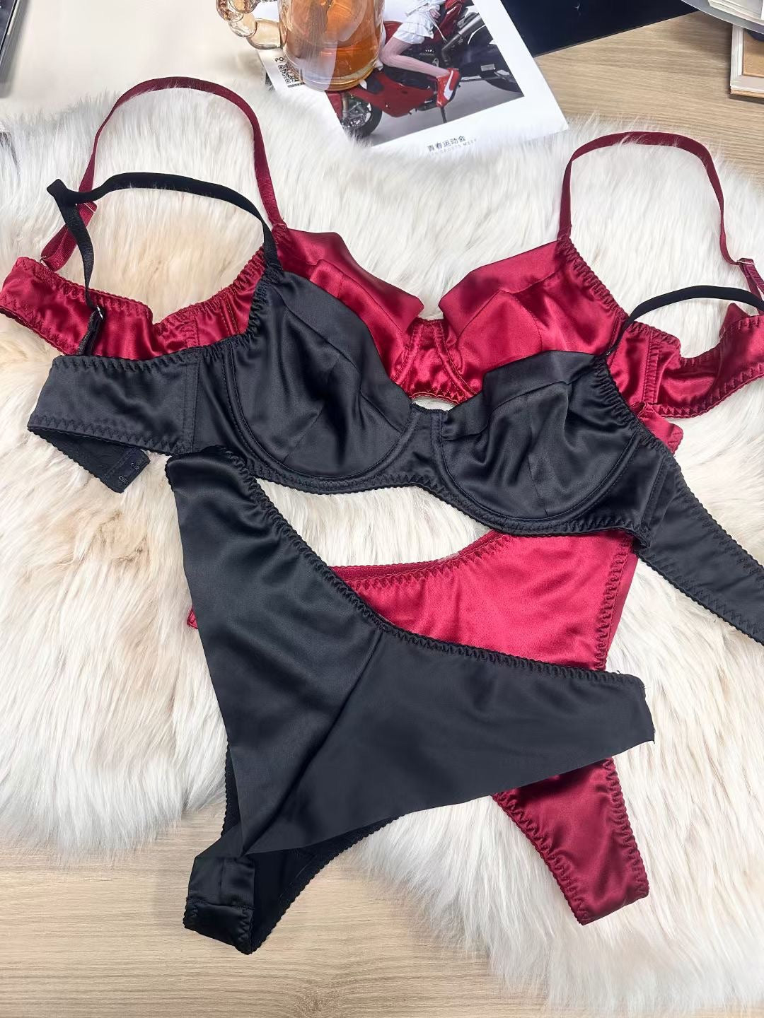 Deeply sexy bra and garter set, push-up and lift women's underwear garter belt