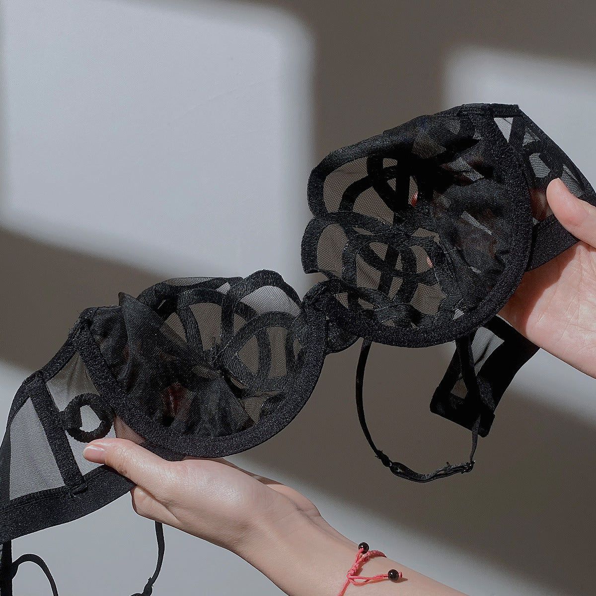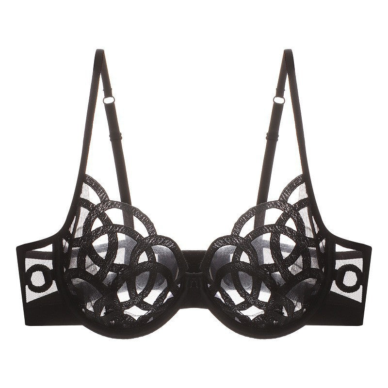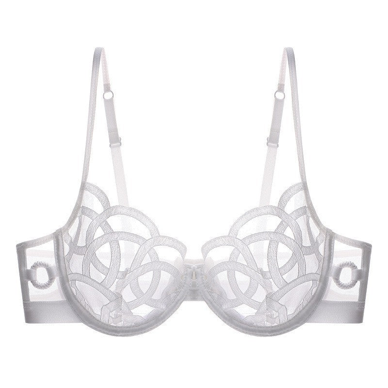 Ultra-thin, non-padded, transparent bra that makes large breasts appear smaller; lace bra for women, sexy lingerie.
