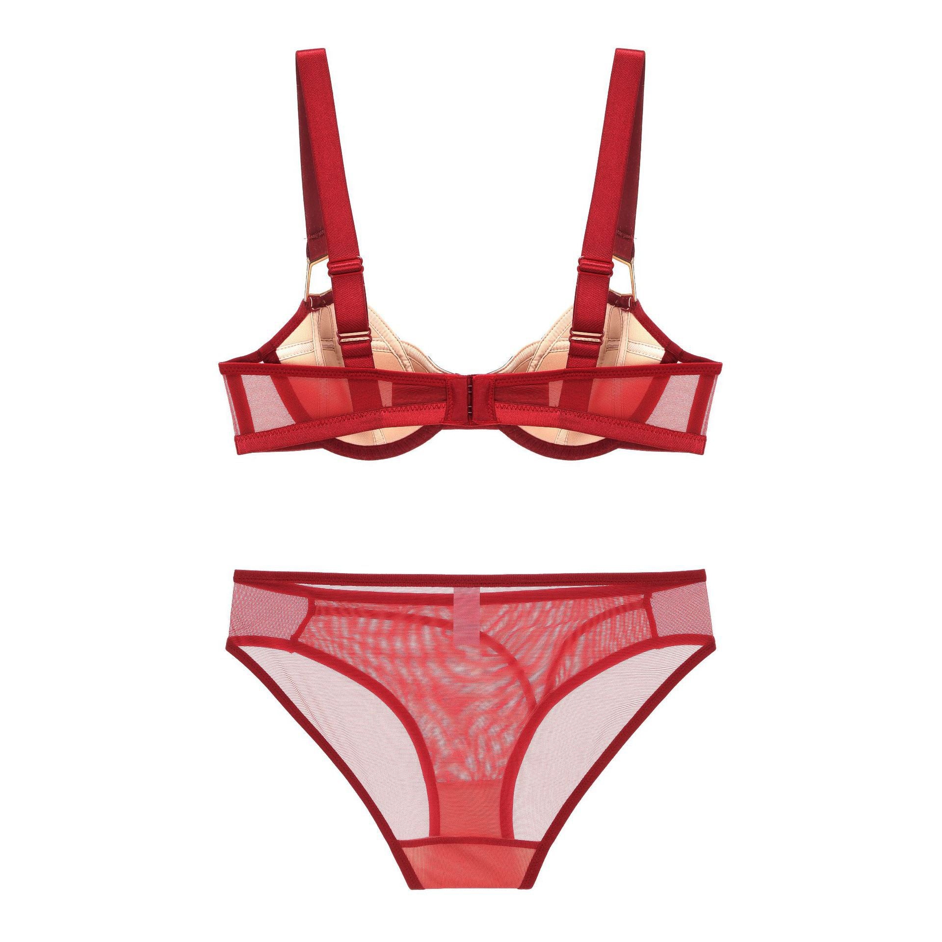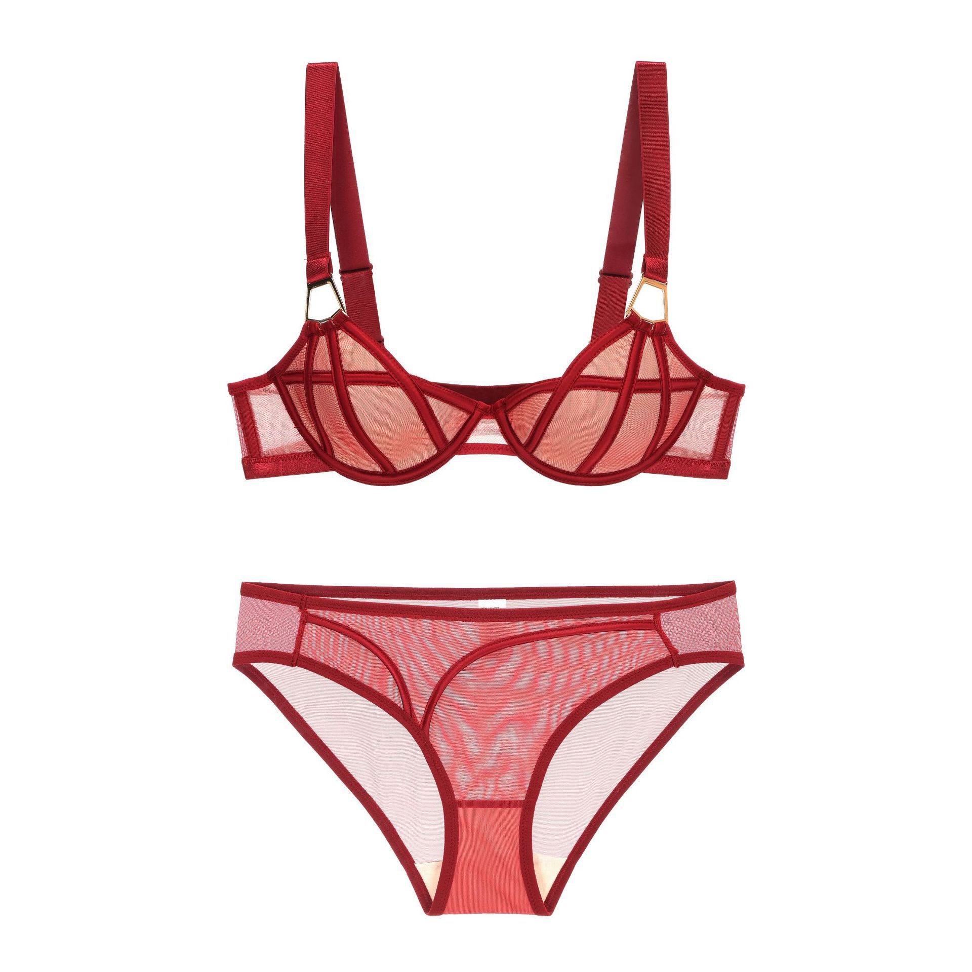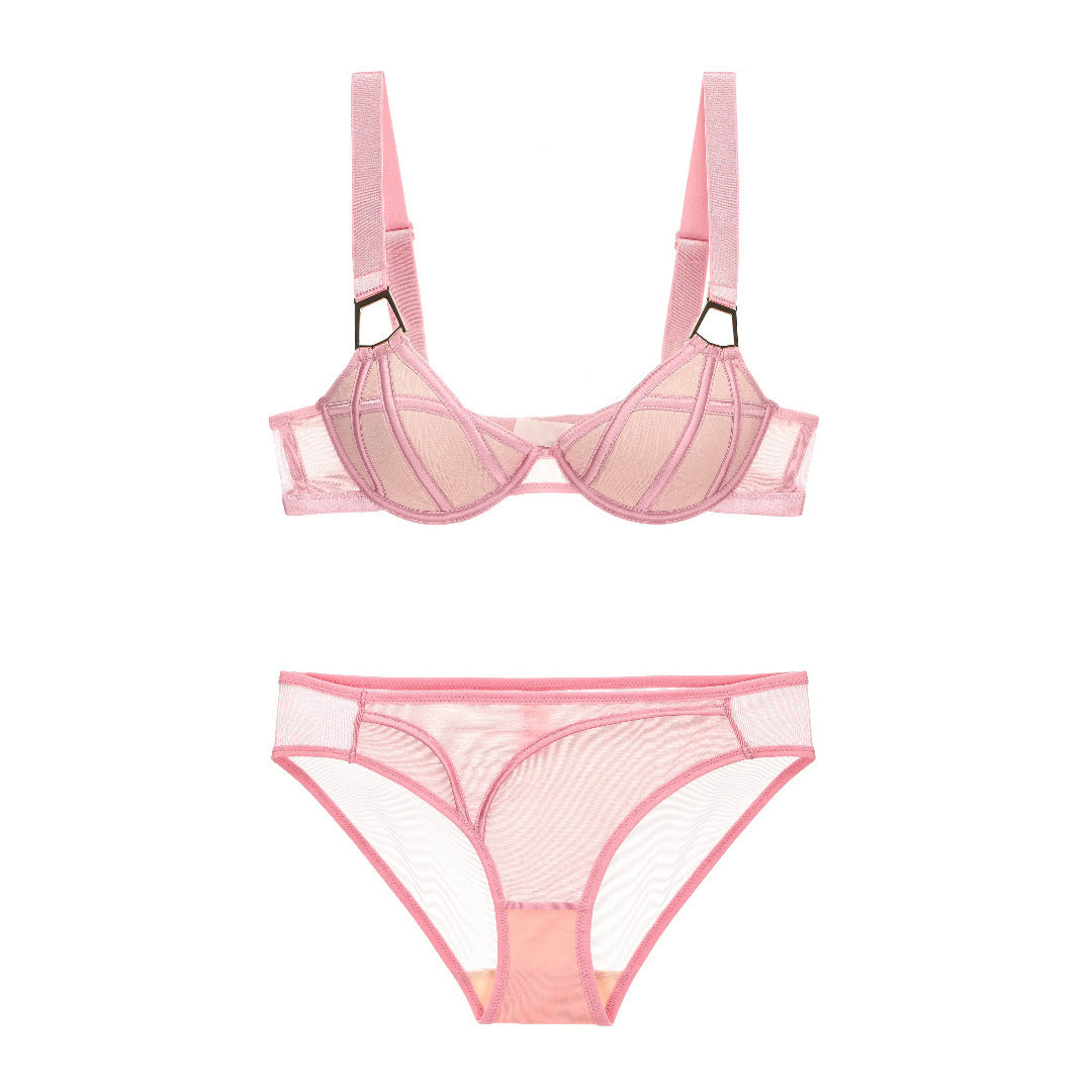 Sexy lace ultra-thin transparent unpadded half-cup bra set