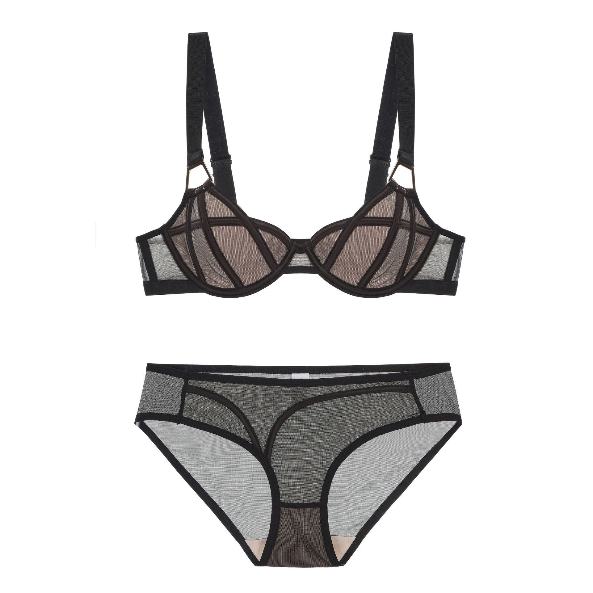 Sexy lace ultra-thin non-padded transparent bra set for women, lingerie for large breasts, makes them appear smaller.