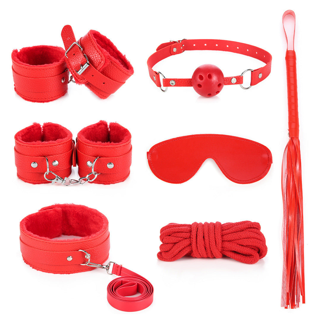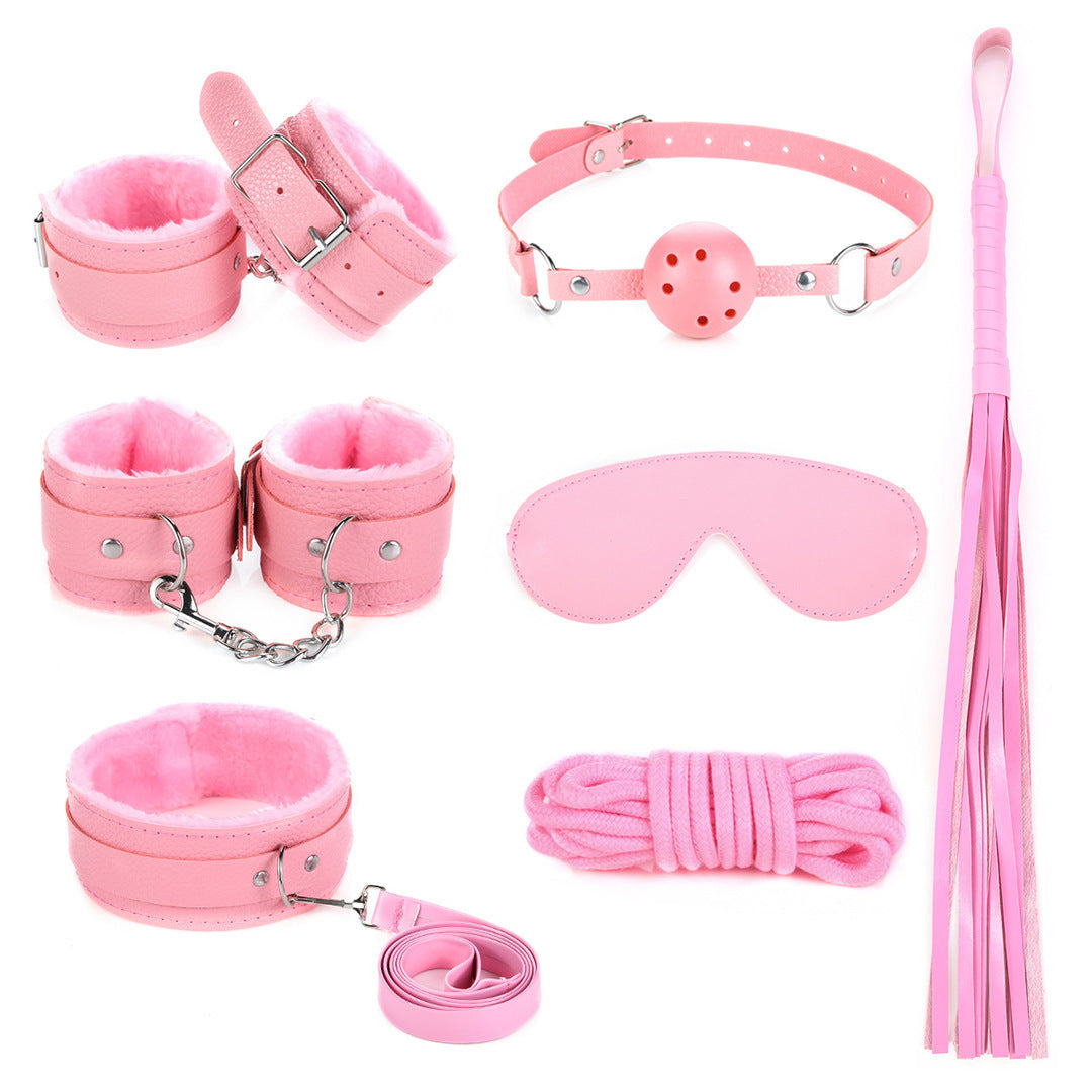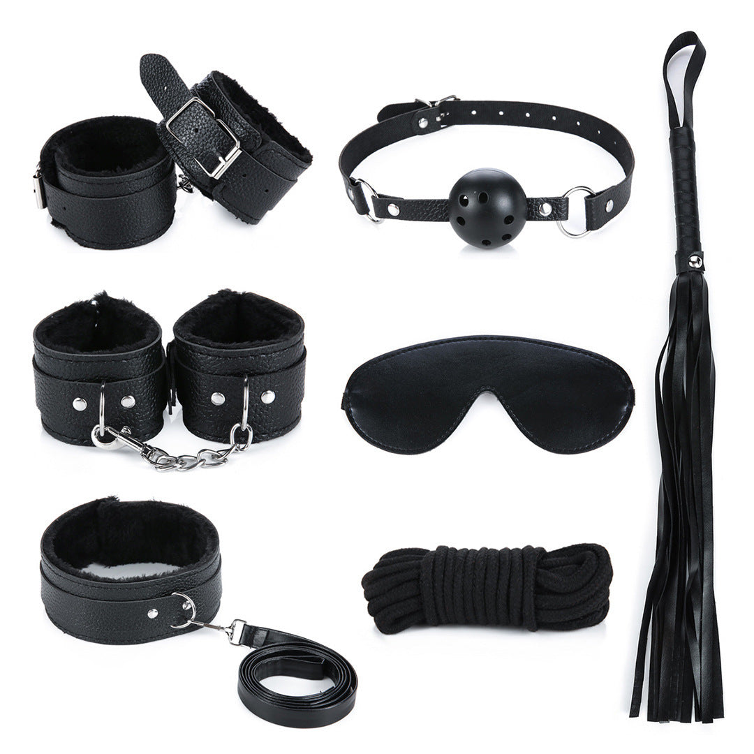 SM seven-piece erotic set, plush leather bondage rope restraint sex toys, alternative couples' flirting supplies and accessories.