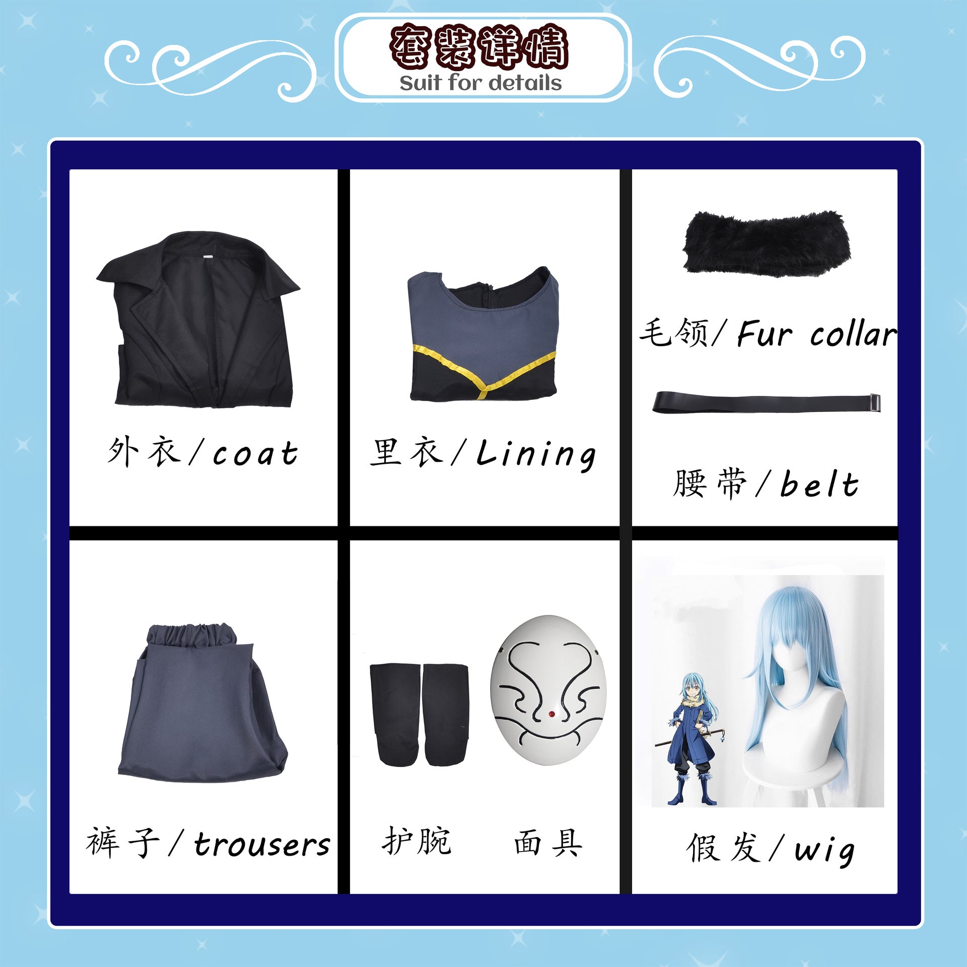転生したらスライムだった件 コスプレ衣装 リムルセット ロールプレイングアニメスタイル (品番 : 643790264641_QT(SY+KZ+PF+YD+ML)_36) ¥20,107 JPY ¥28,724 JPY 29% OFF 3988 在庫あり 色: コンプリートセット(トップス+パンツ+ケープ+ベルト+ファーカラー) コンプリートセット(トップス+パンツ+ケープ+ベルト+ファーカラー) サイズ: 36 36 購入数 カートに追加 商品説明 魔王の黒衣装の重さは約0.85kgです。 マスクの重さは約0.12kgです。 ウィッグの重さは約0.3kg ! ! 商品登録日 February 23, 2026 タグ # cos # 史莱姆 # 角色扮演