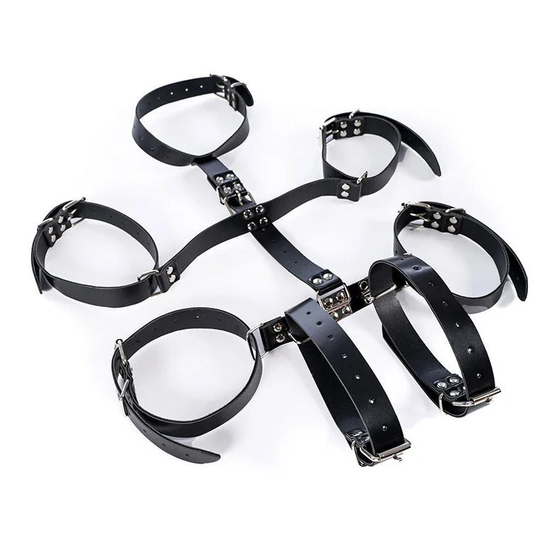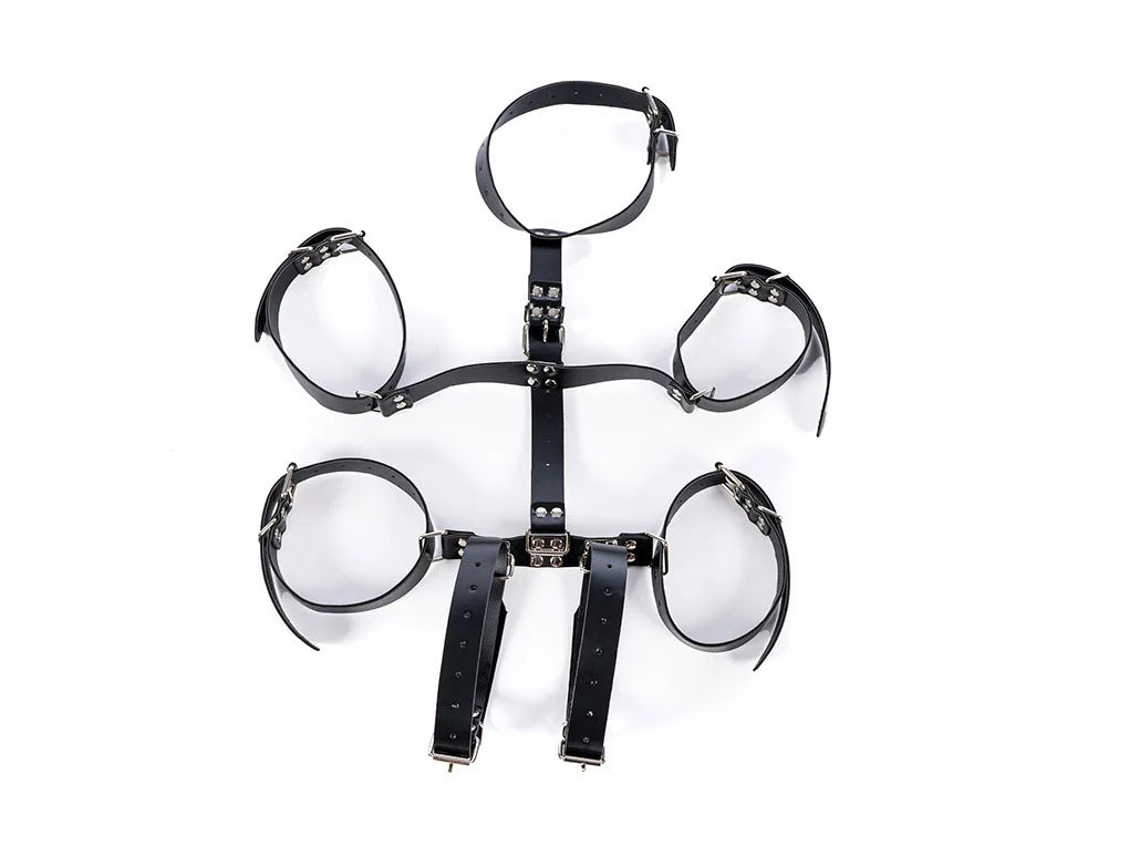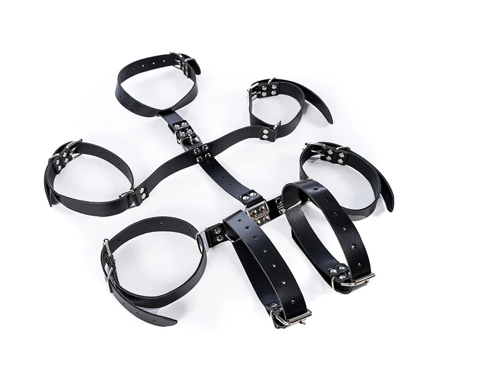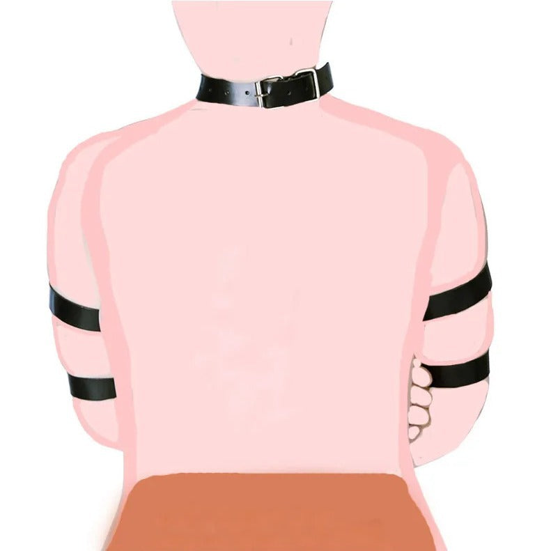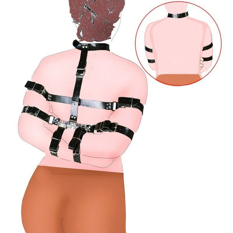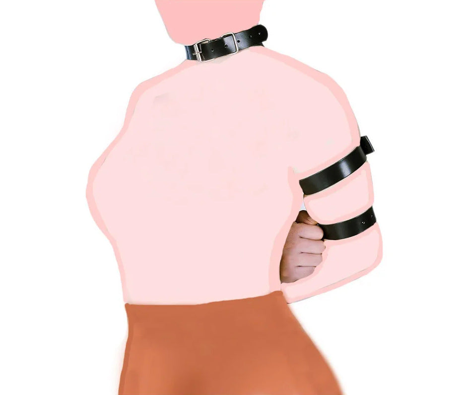 大人のセックス玩具、カップルのいちゃつき、代替トレーニング、黒革のボンデージ、後ろ手ブレース、ネックストラップ、アクセサリー。