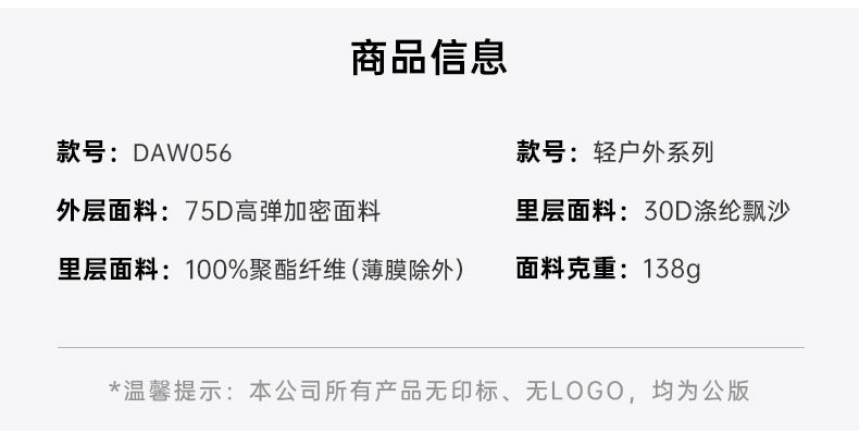 男女兼用 YKKジッパー 耐摩耗性 通気性登山服 撥水防風防汚ヒートシールカラーブロックフード付きジャケット DAW056ヨガウェア (品番 : 736683478276_B/MS_S) ¥10,803 JPY ¥15,416 JPY 29% OFF 2839 在庫あり 色: 白/オフホワイト 白/オフホワイト サイズ: S S 購入数 カートに追加 商品説明 ;; 商品登録日 April 04, 2026 タグ # daw056 # ykk # 冲锋衣 # 登山服