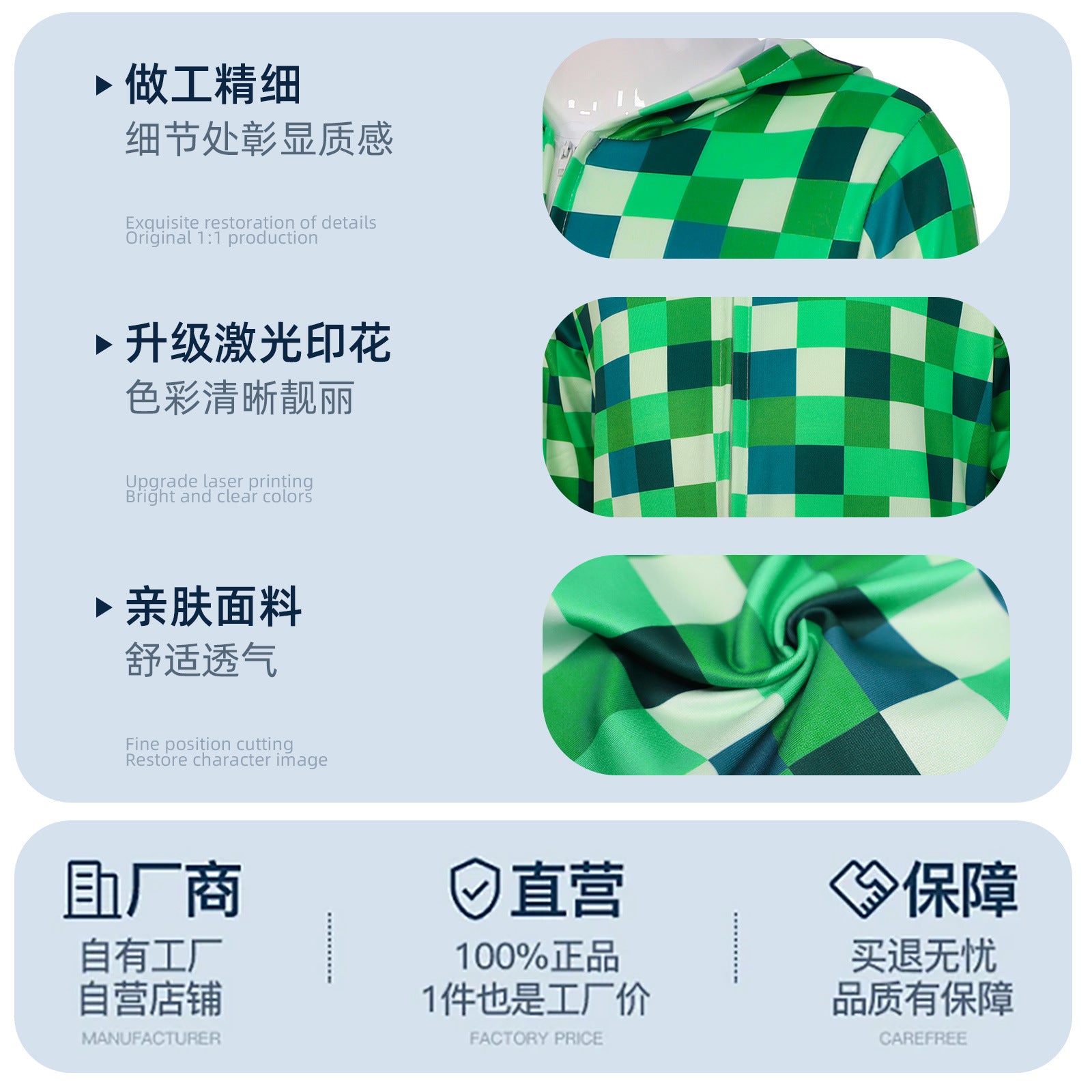 年長児向けの Minecraft コスプレ衣装、長袖の緑色のブロック衣装、アニメ スタイル。 (品番 : 971957920568_WDSJFKLTY_ET110cm) ¥4,243 JPY ¥6,045 JPY 29% OFF 3988 在庫あり 色: マインクラフト ブロック ジャンプスーツ マインクラフト ブロック ジャンプスーツ サイズ: 子供 110cm 子供 110cm 子供 120cm 子供 130cm 子供 140cm 子供 150cm 購入数 カートに追加 商品説明 商品登録日 March 02, 2026 タグ # cos # minecraft # 万圣节