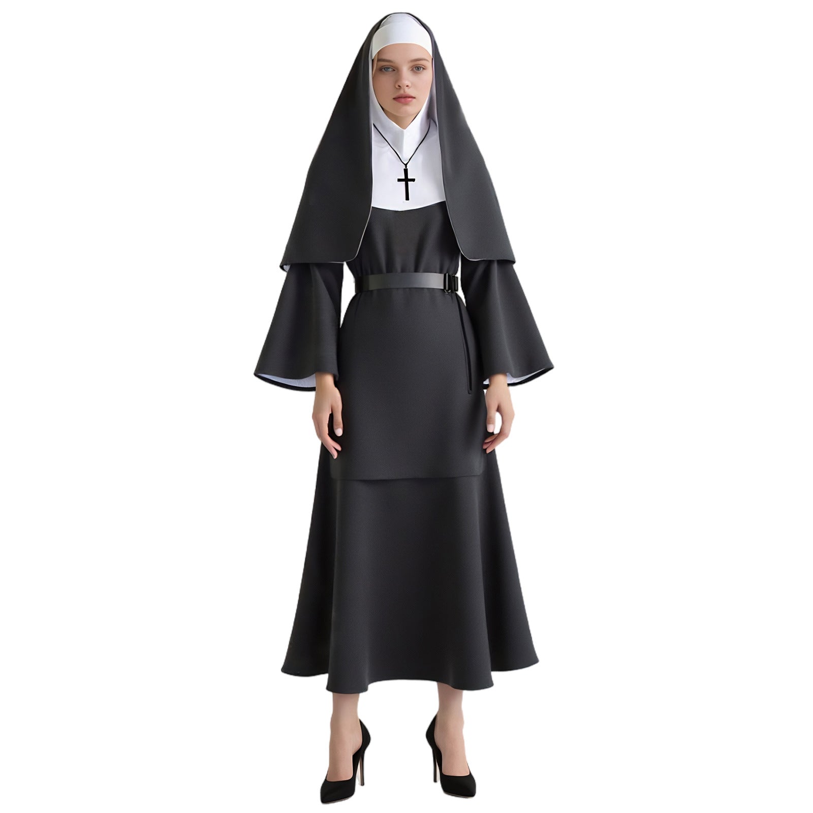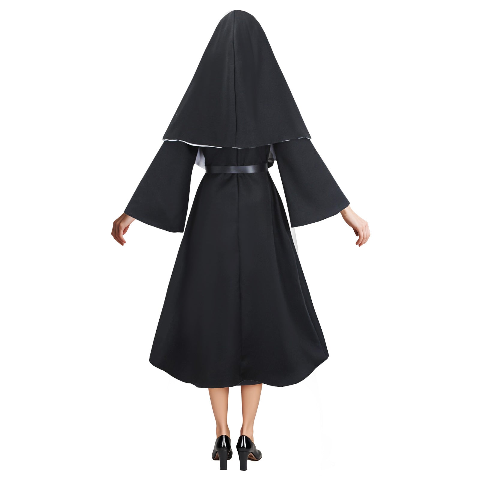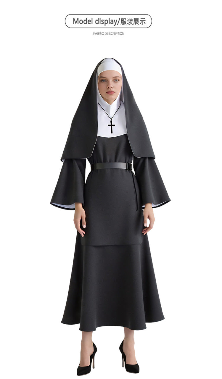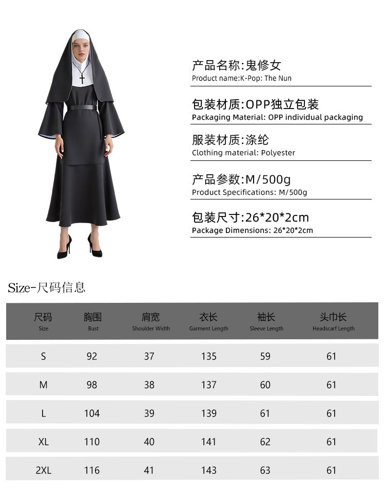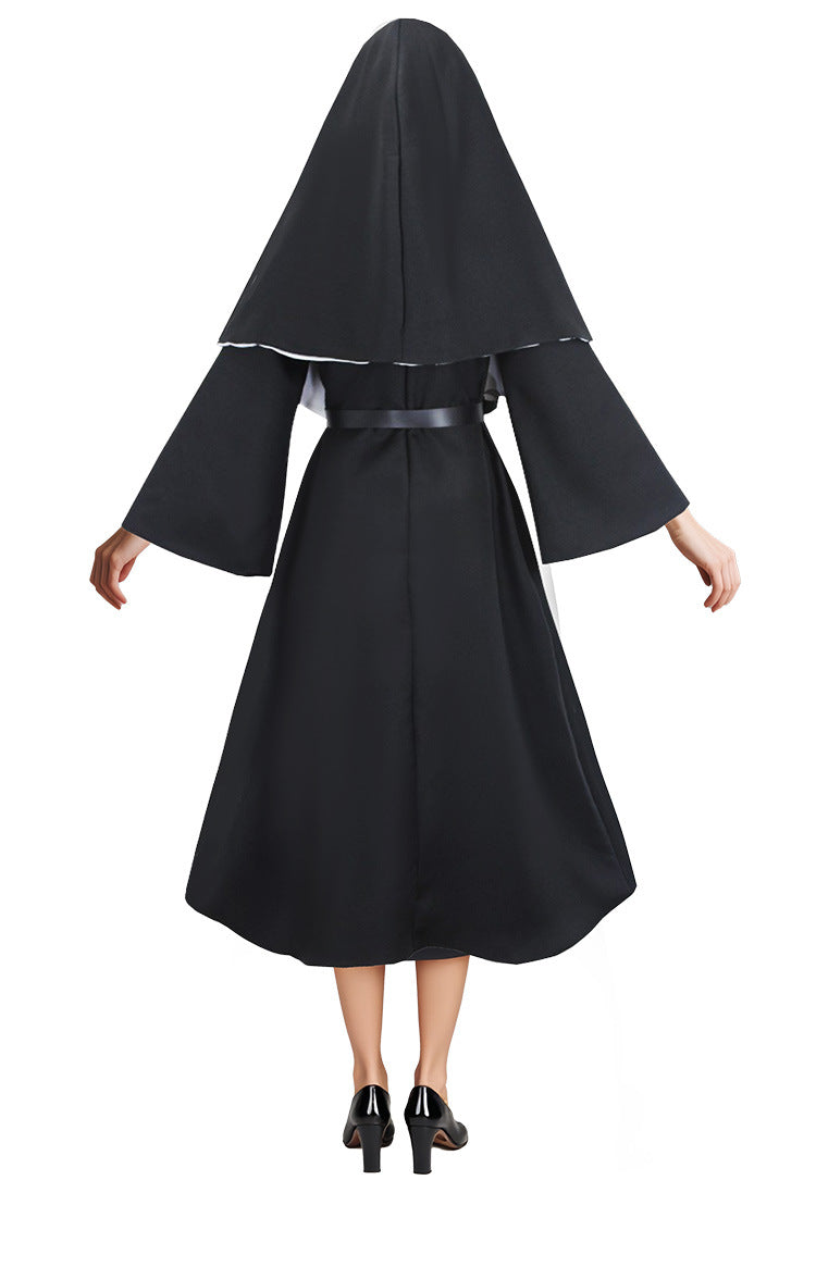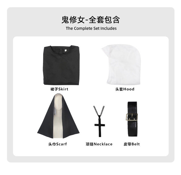 THE NUN ゴースト尼僧のコスプレハロウィーンコスチューム、不気味な尼僧の僧侶のローブ、尼僧の習慣、アニメスタイル。