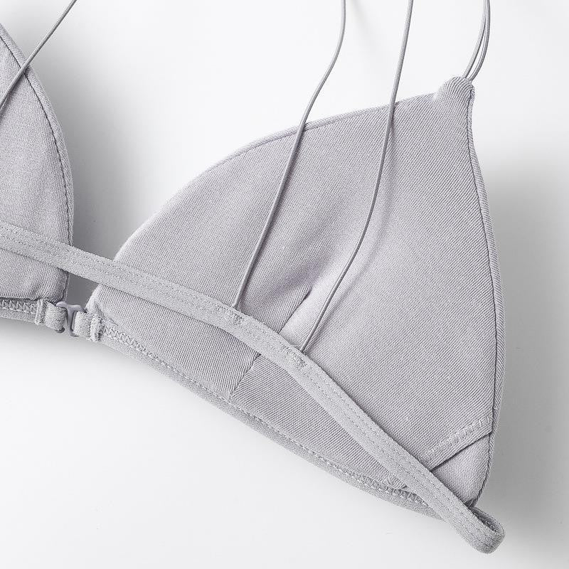 性感前扣内衣女法式三角杯无钢圈内衣薄棉超细肩带美背文胸套装ランジェリー
