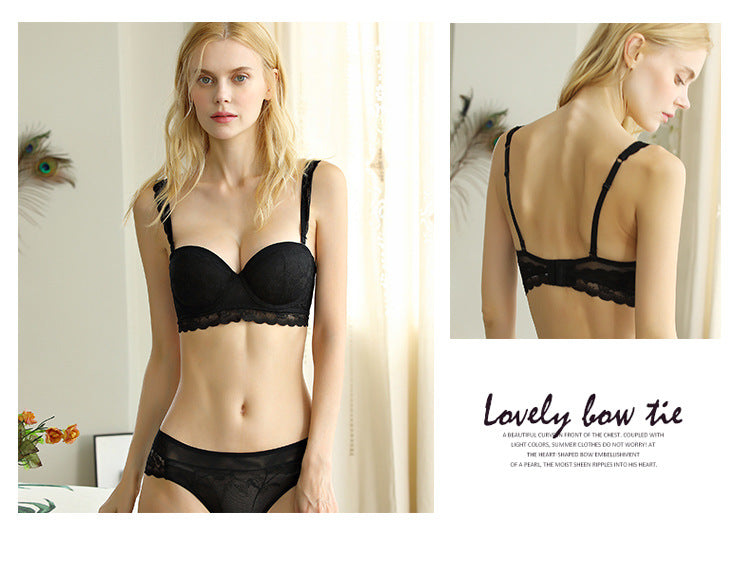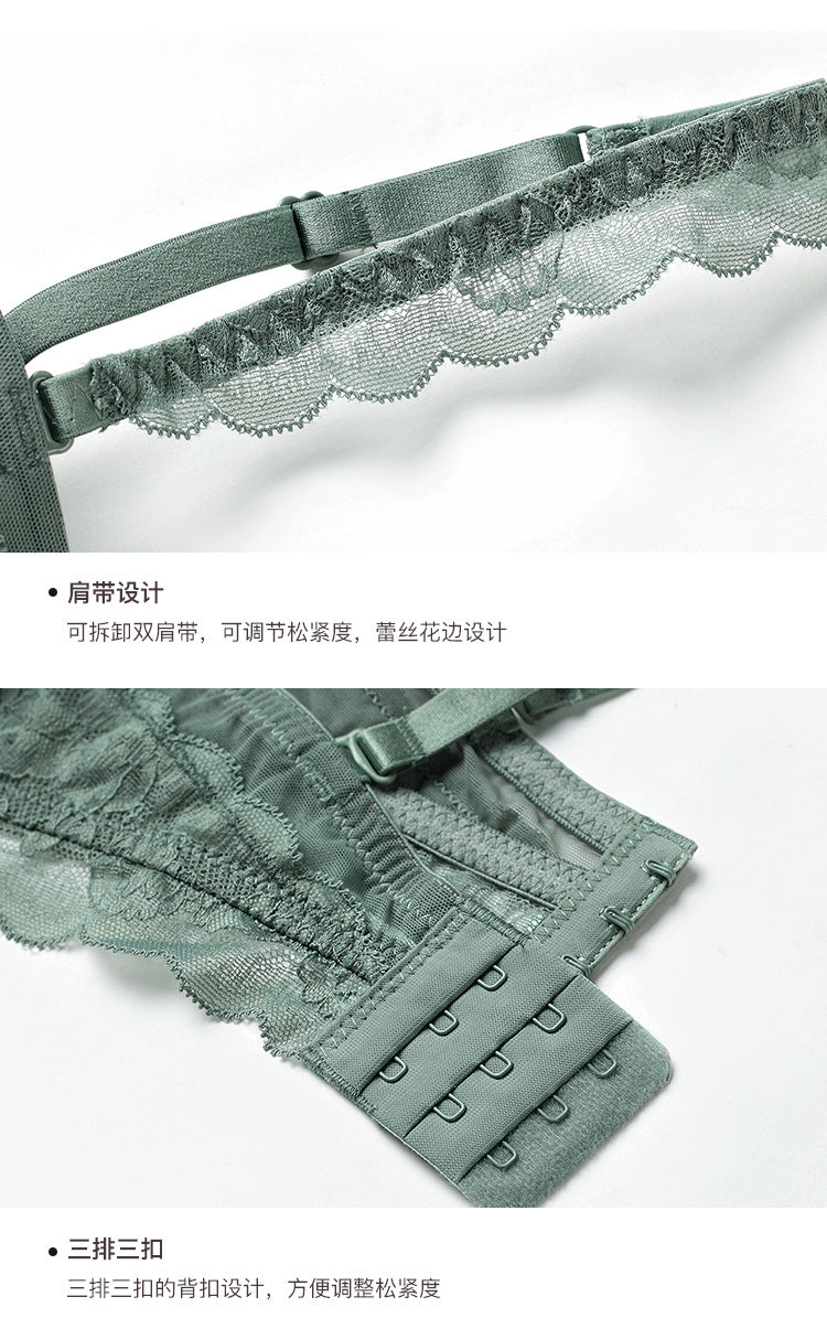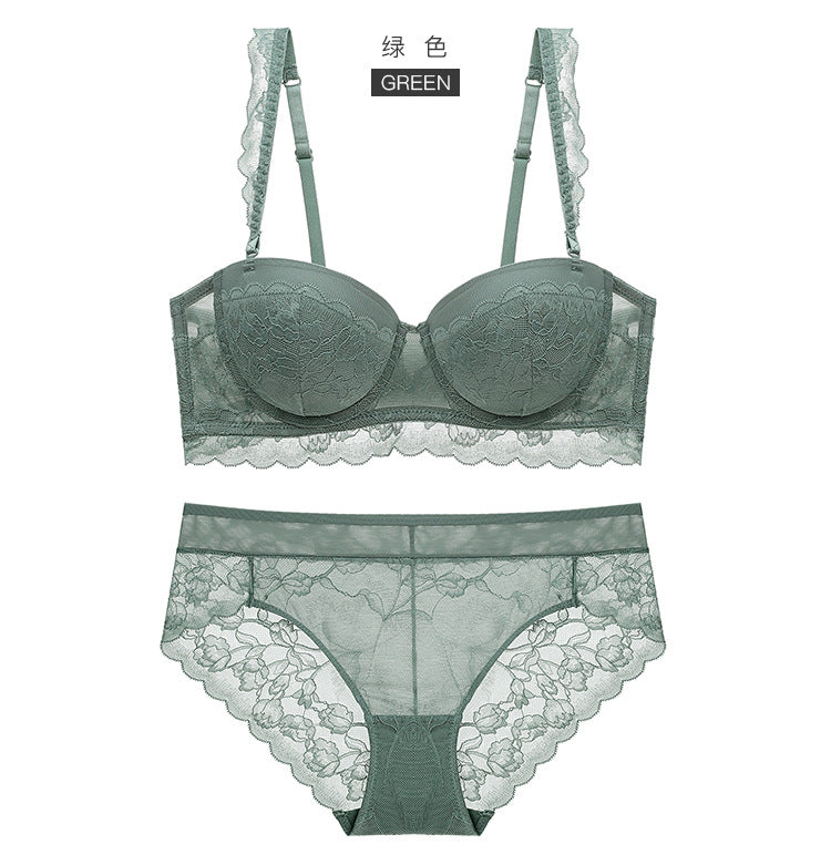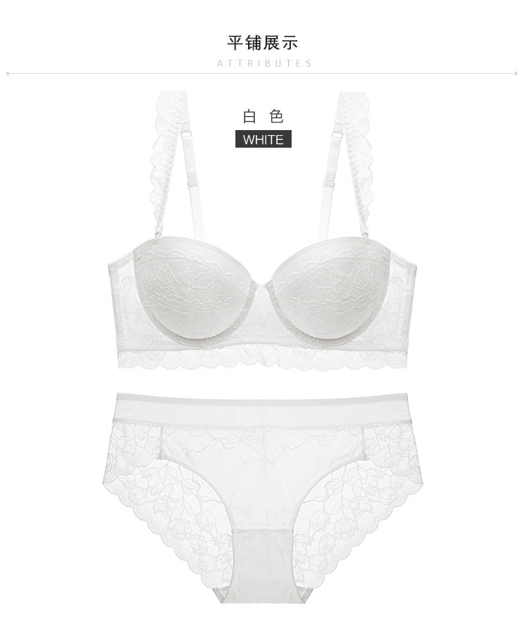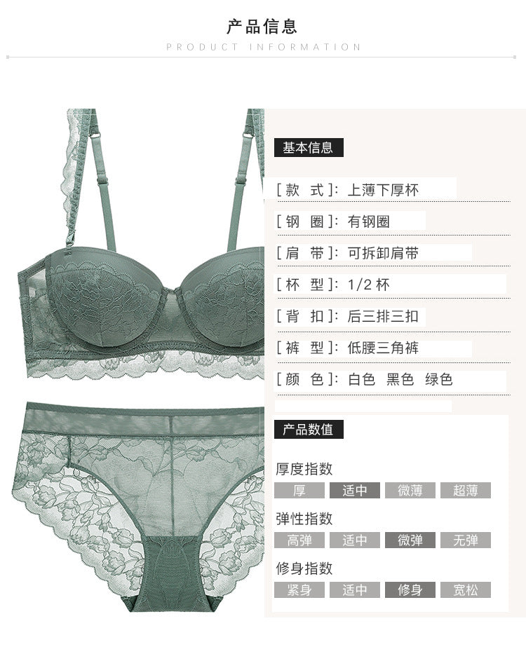 性感蕾丝超薄款透明无垫半杯乳罩文胸套装