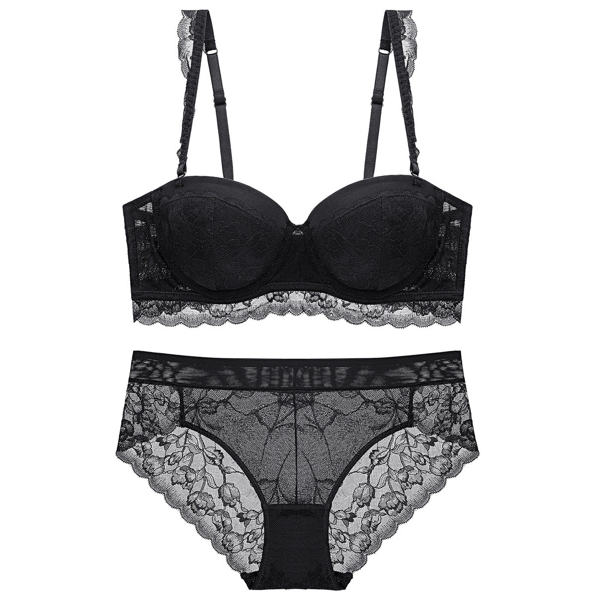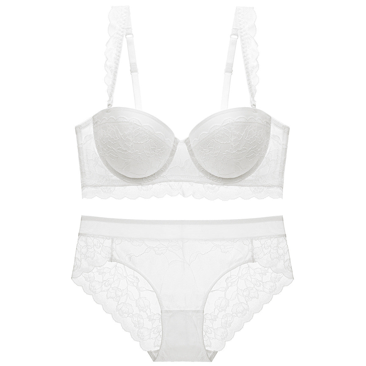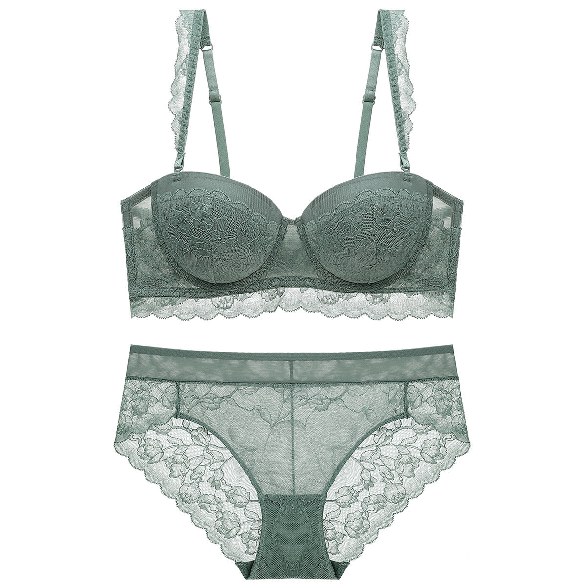 性感蕾丝超薄款透明无垫半杯乳罩文胸套装