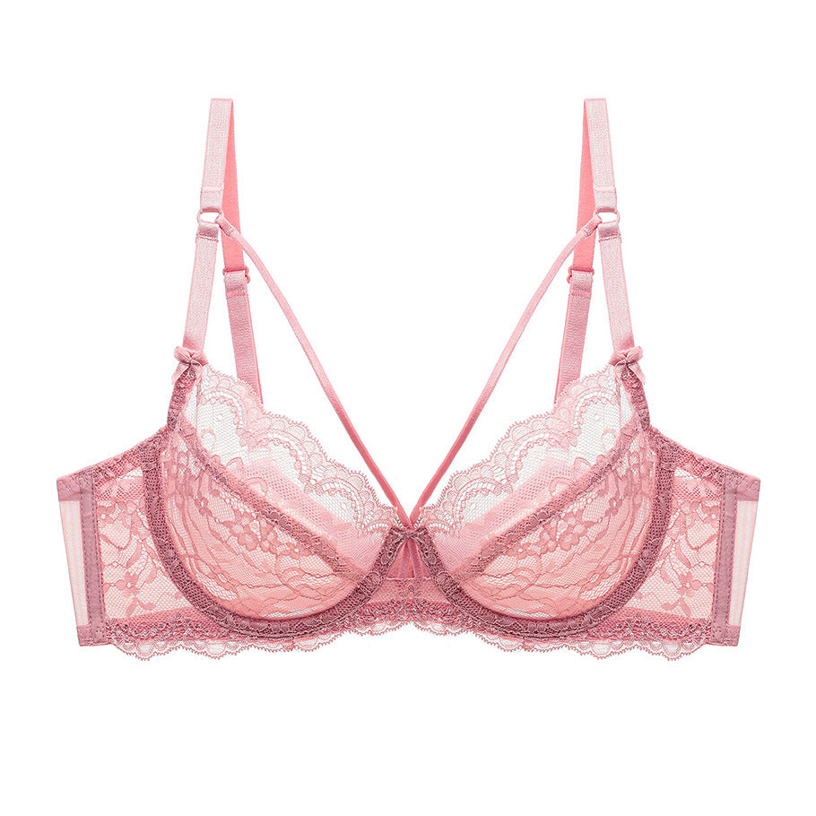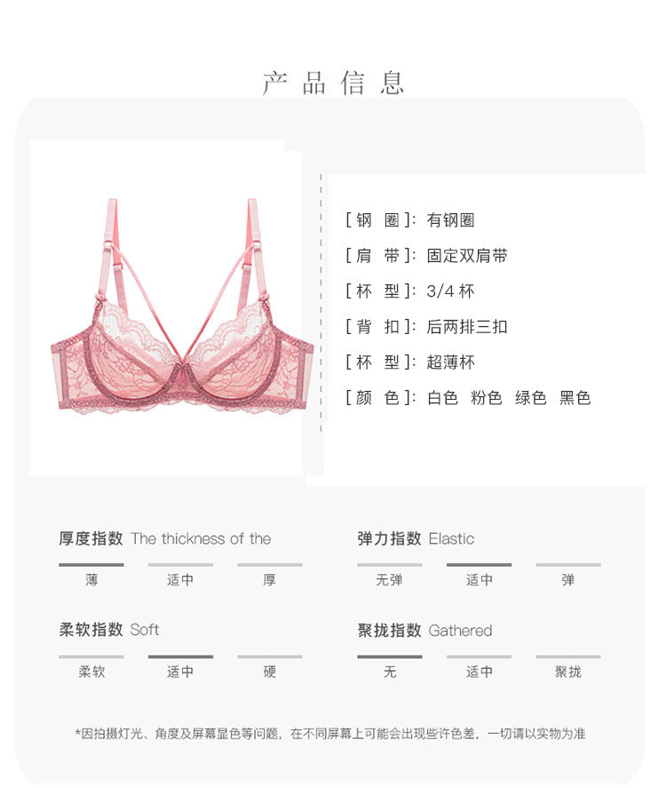 超薄蕾丝美背内衣女聚拢文胸套装透明舒适透气胸罩