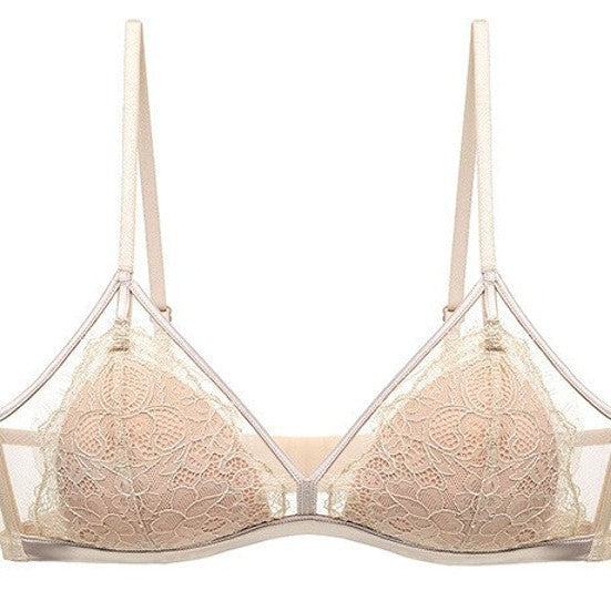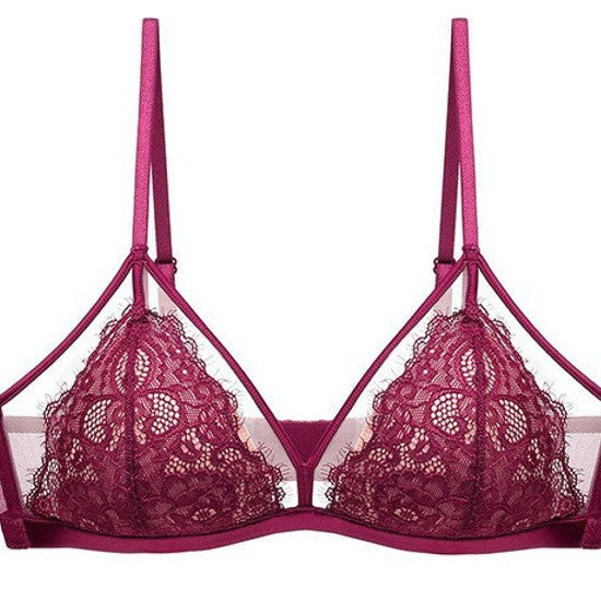 新品性感眼睫毛无钢圈文胸法式蕾丝内衣女薄棉三角杯聚拢文胸ランジェリー