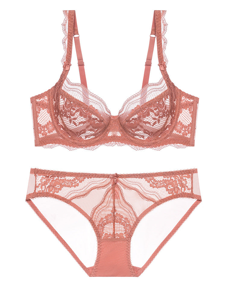 性感蕾丝超薄款透明无垫半杯乳罩文胸套装