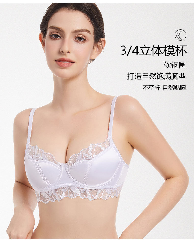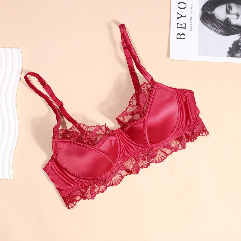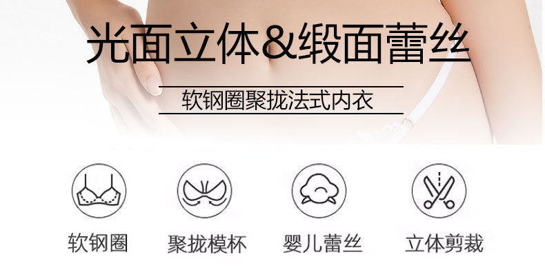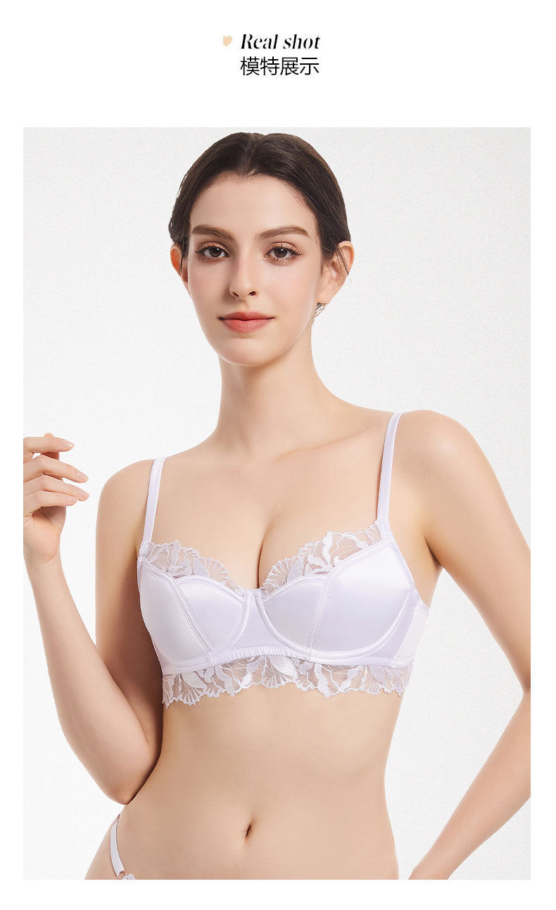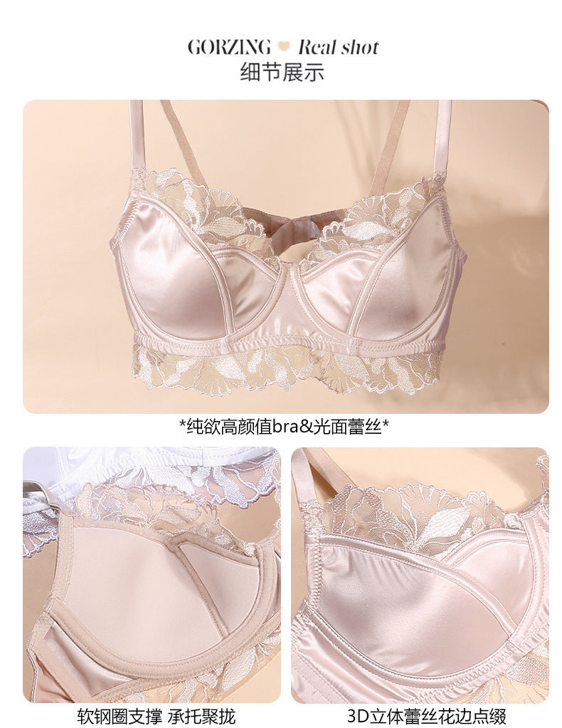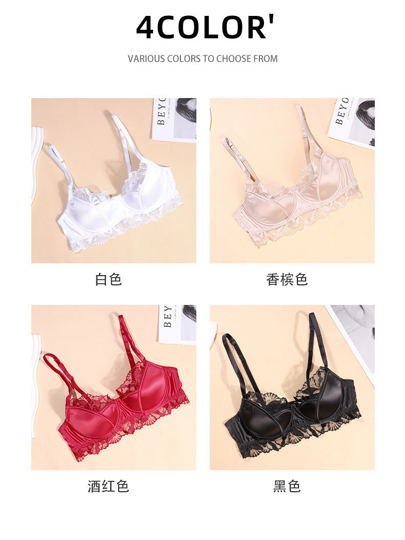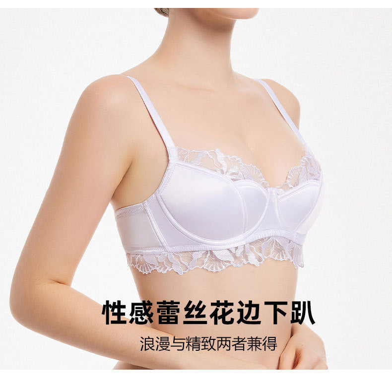 欧美性感内衣女法式薄款缎面蕾丝文胸大胸显小防下垂大码内衣胸罩ランジェリー