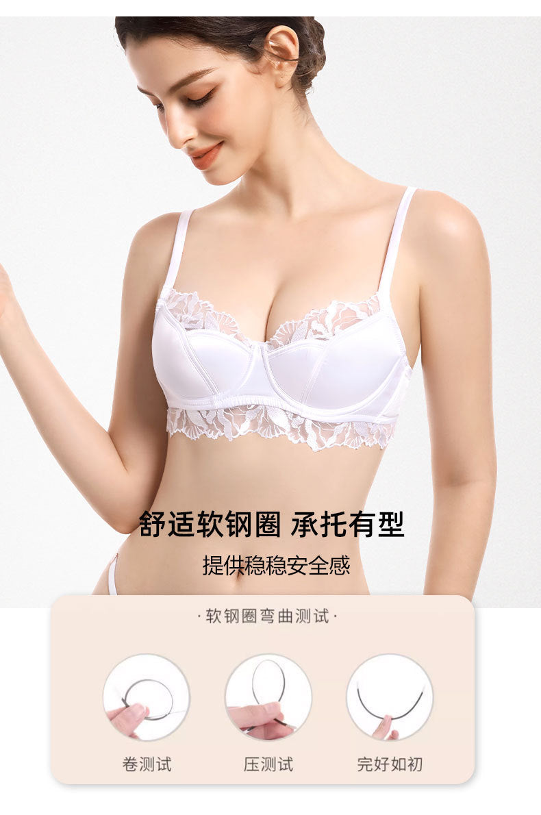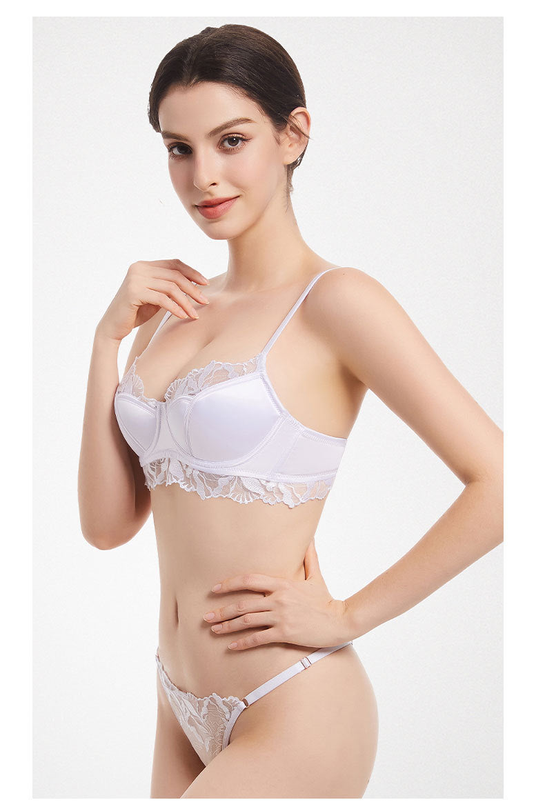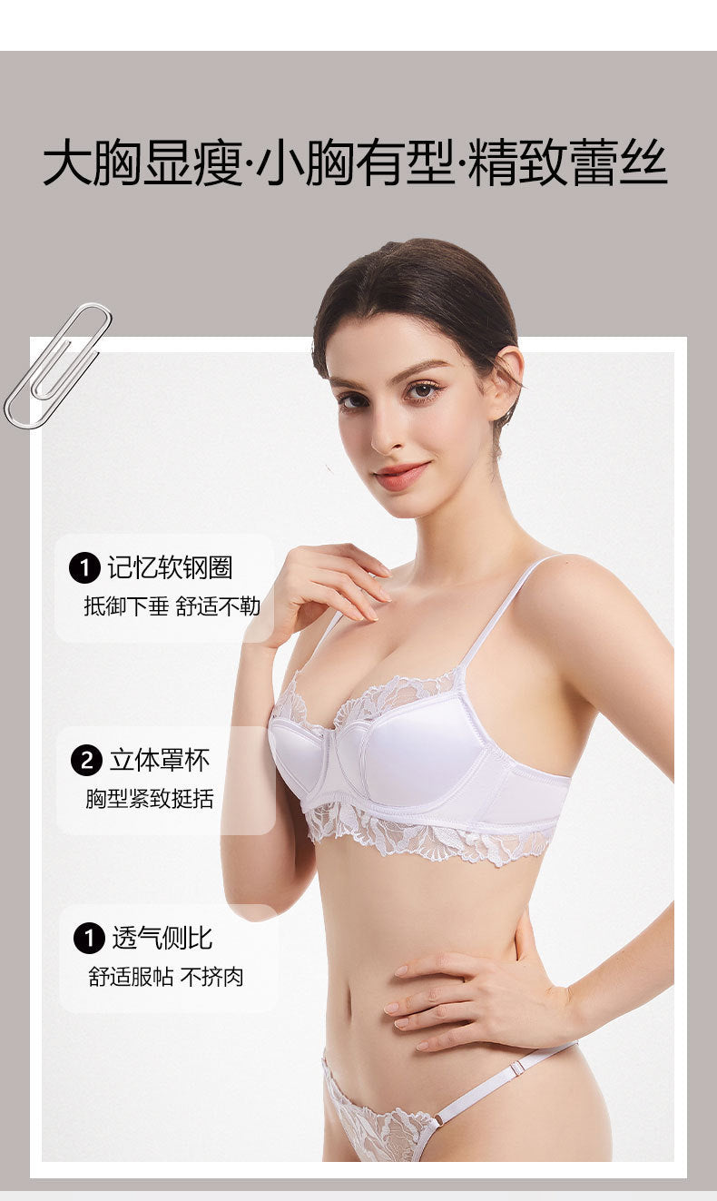 性感蕾丝超薄款透明无垫半杯乳罩文胸套装