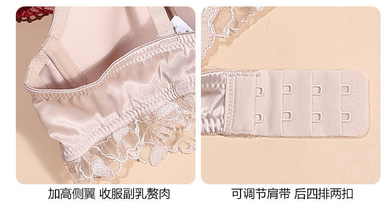 厂家批发代发 宫廷藤蔓提花蕾丝半杯文胸套装 薄棉杯本命年内衣