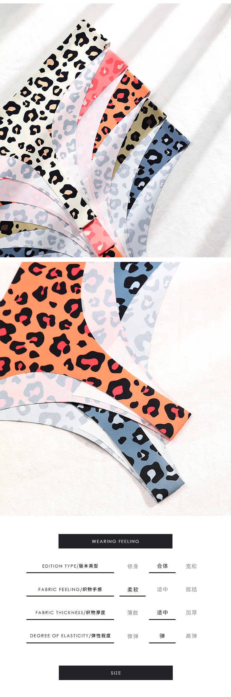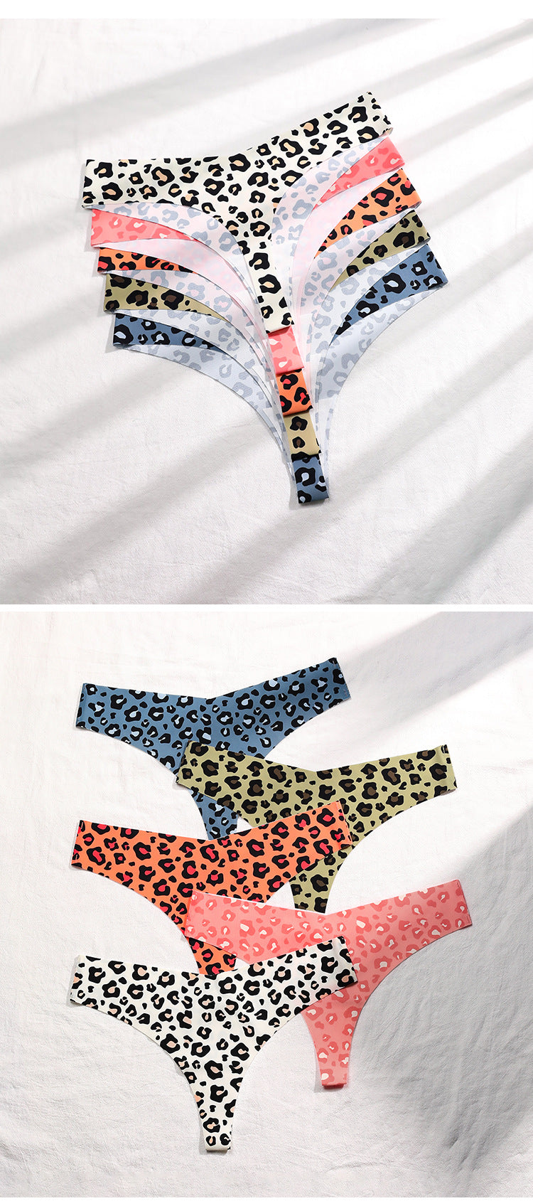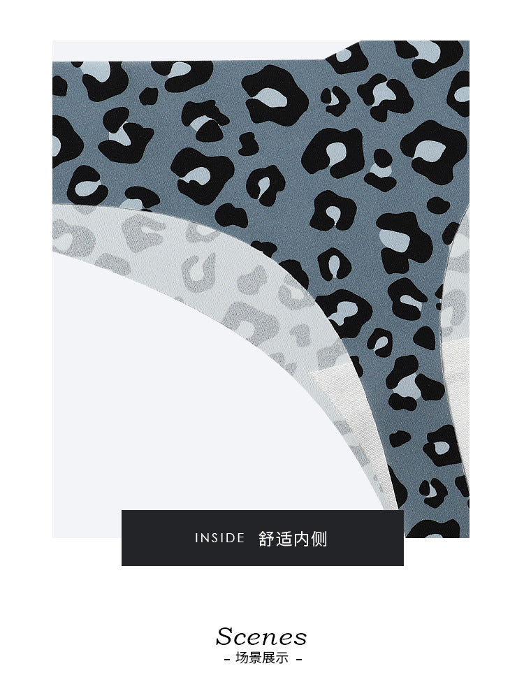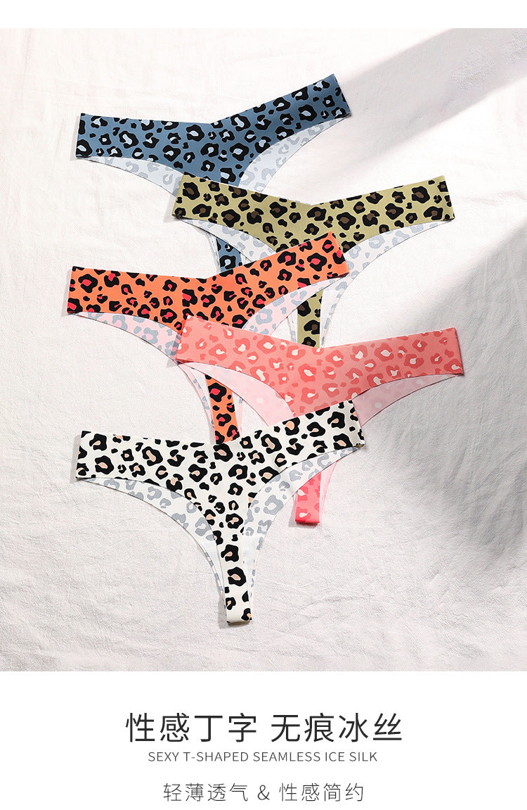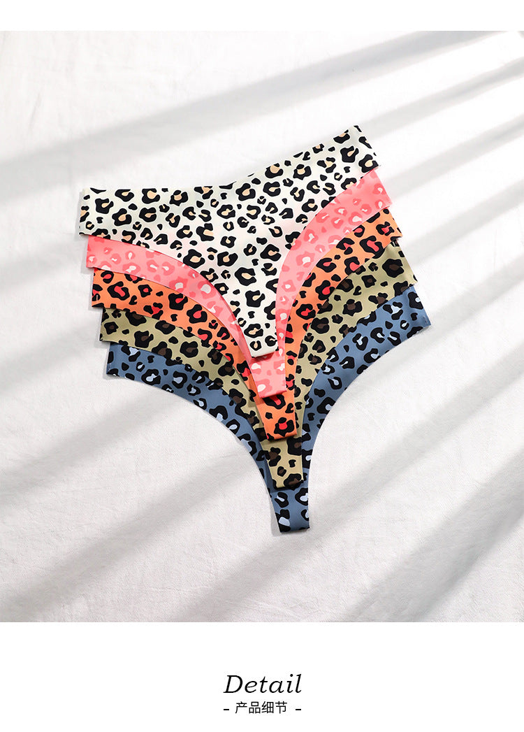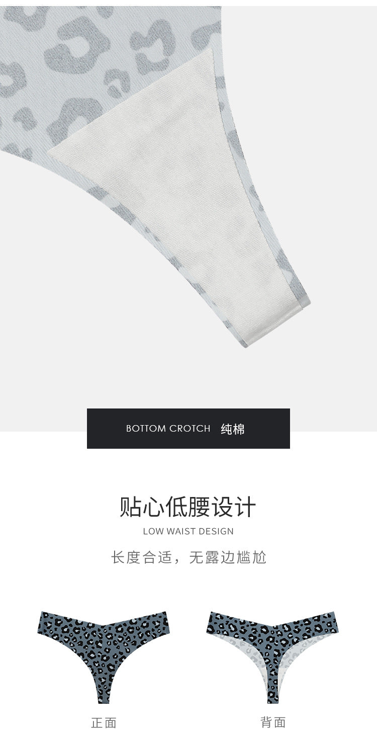 欧美性感豹纹无痕内裤女冰丝透气速干运动纯棉裆抑菌女士丁字内裤ランジェリー