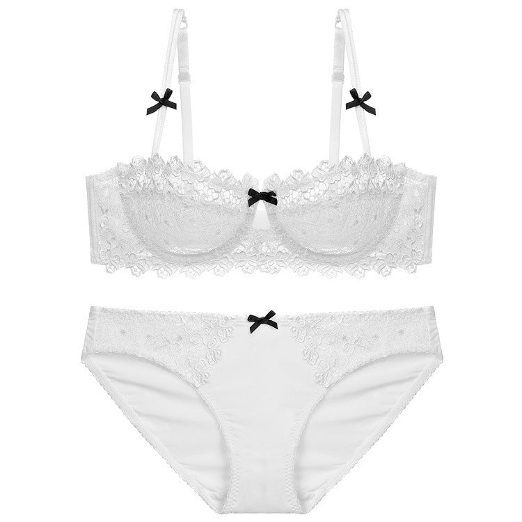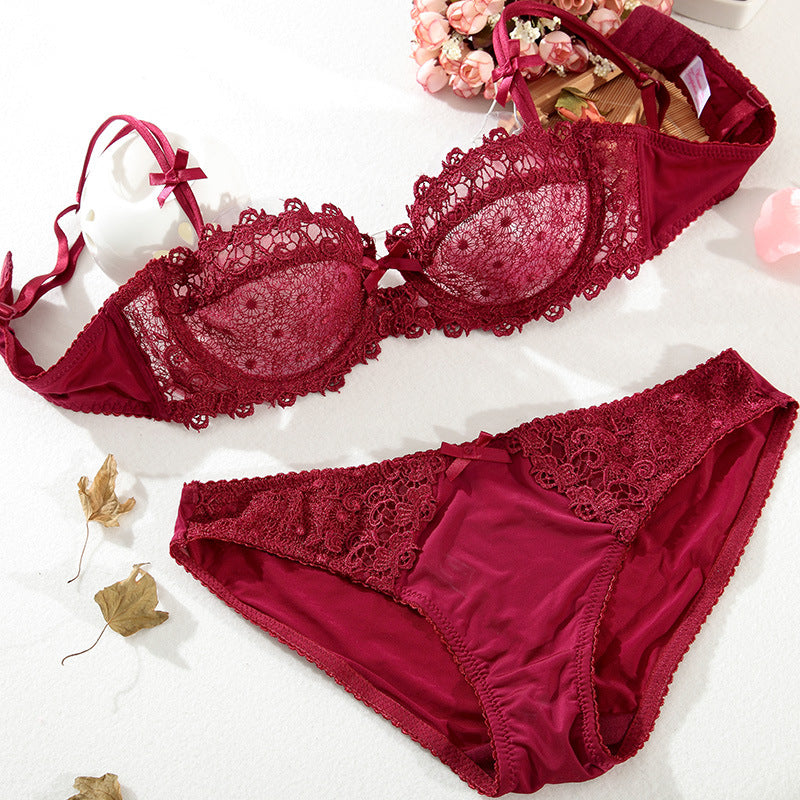 性感蕾丝超薄款透明无垫半杯乳罩文胸套装