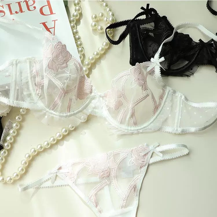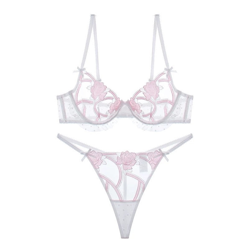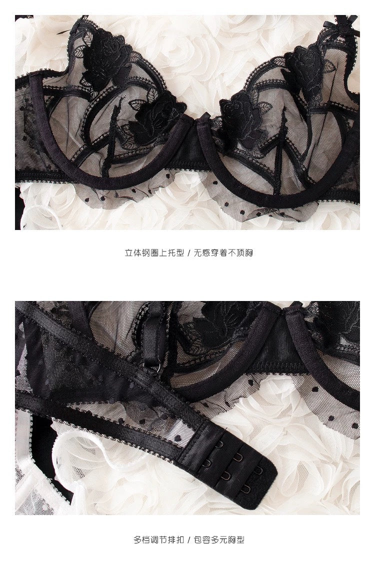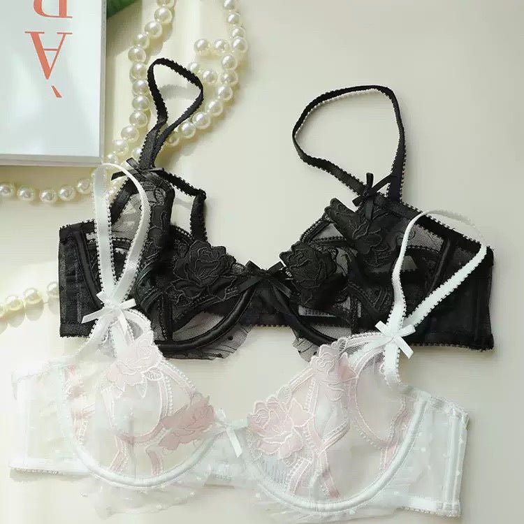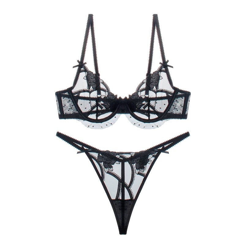 性感蕾丝超薄款透明无垫半杯乳罩文胸套装