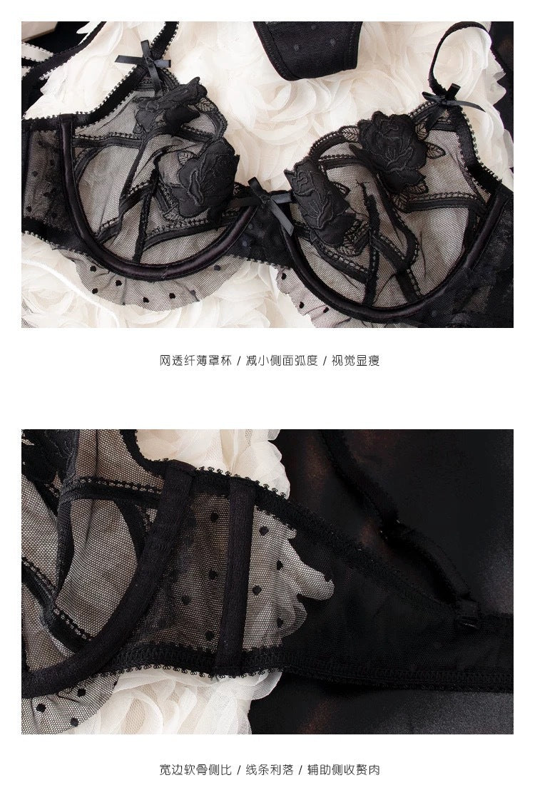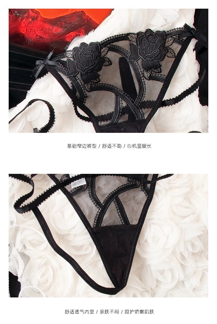 法式内衣女性感超薄刺绣蕾丝内衣大胸显小防下垂丁裤文胸套装ランジェリー