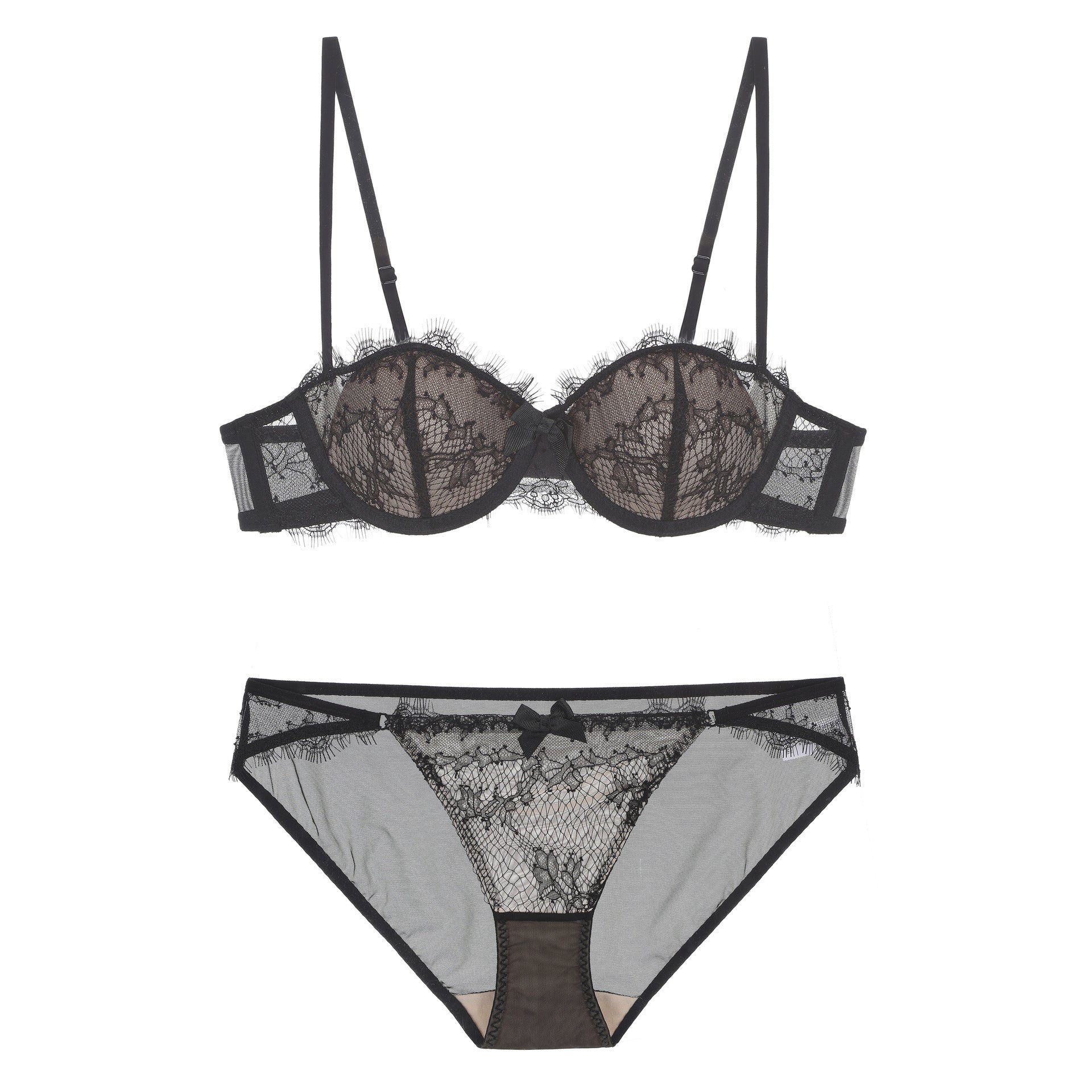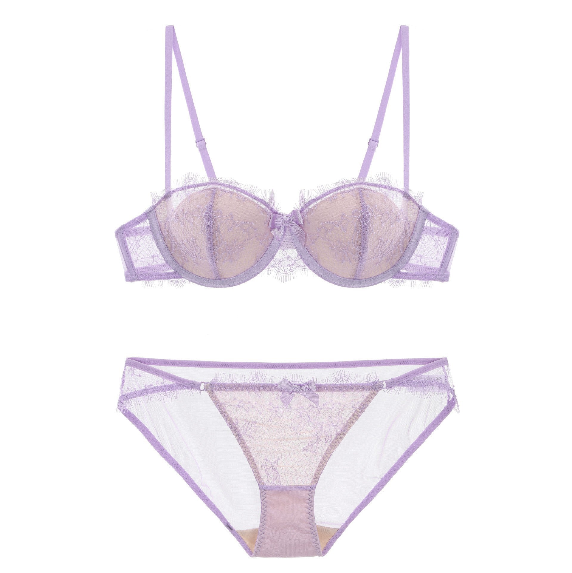 性感蕾丝超薄款透明无垫半杯乳罩文胸套装