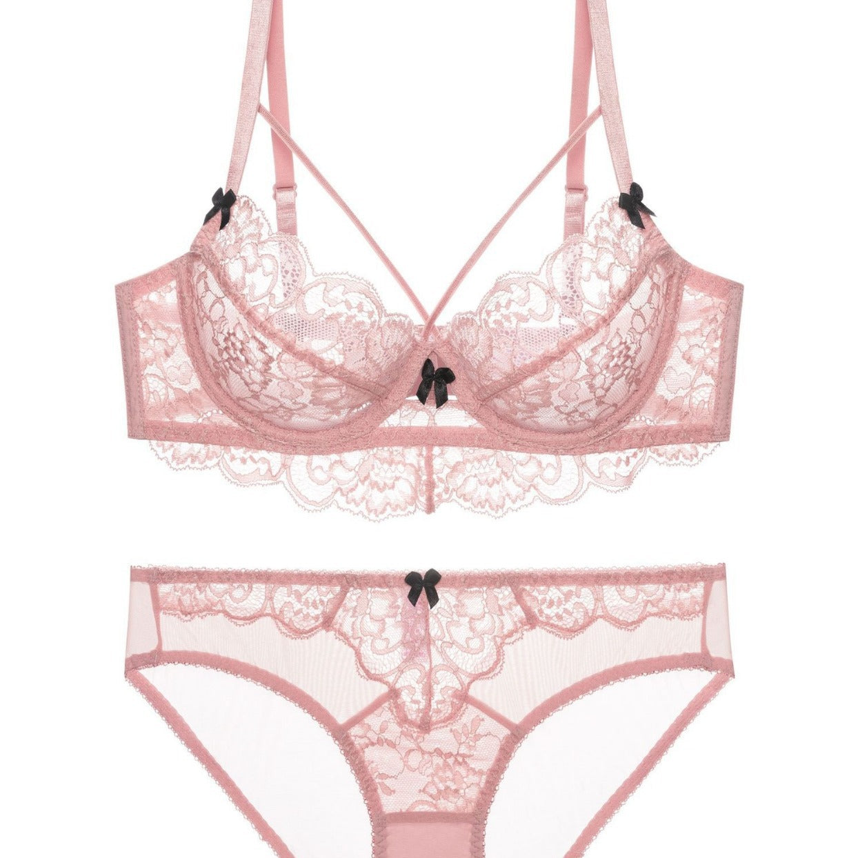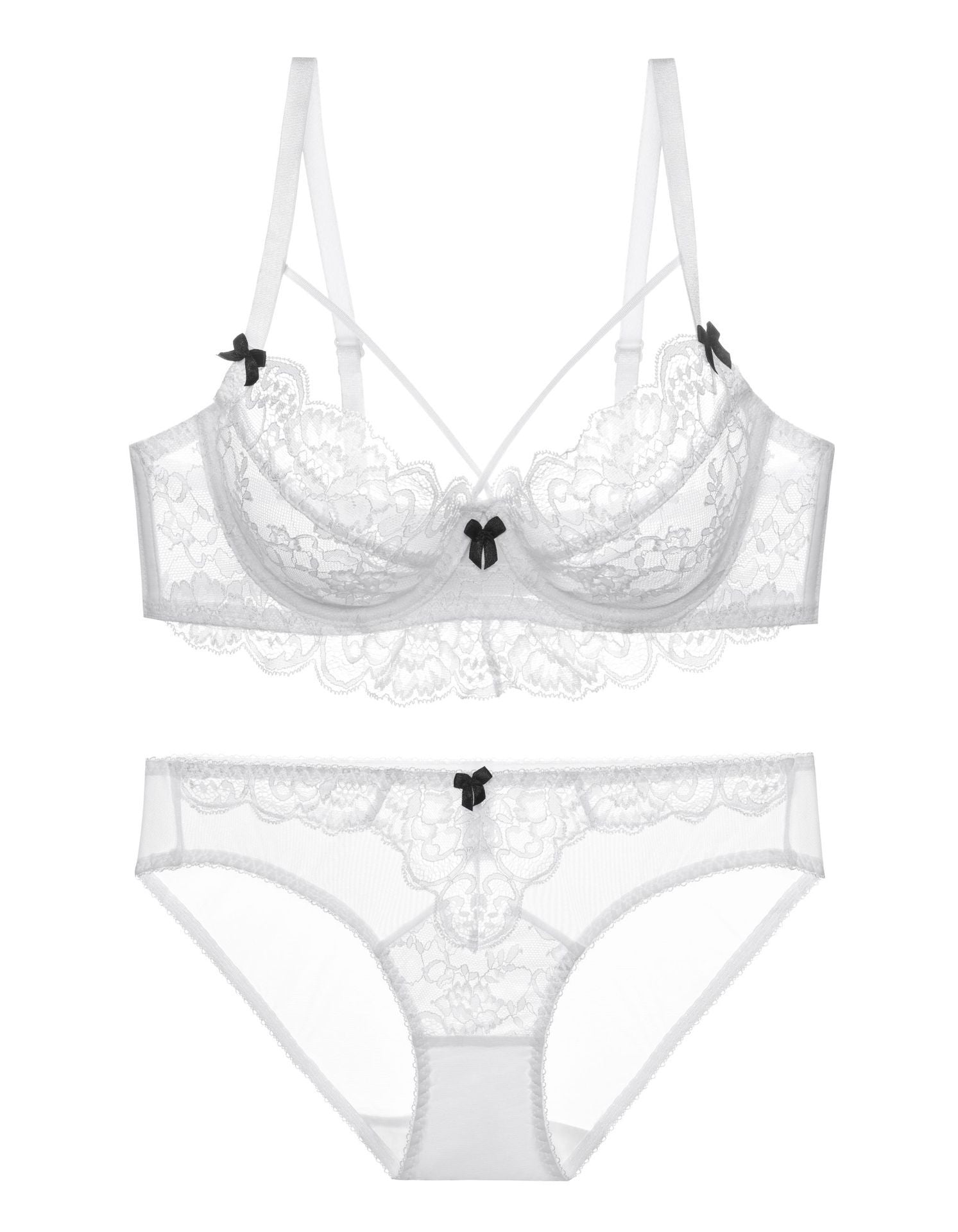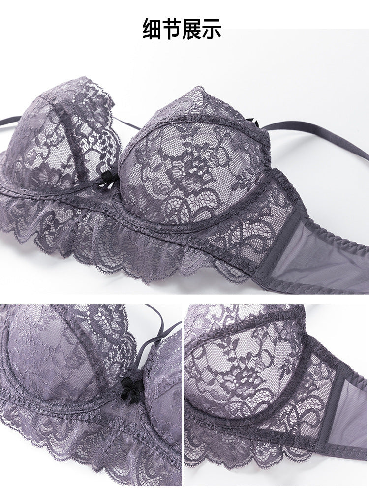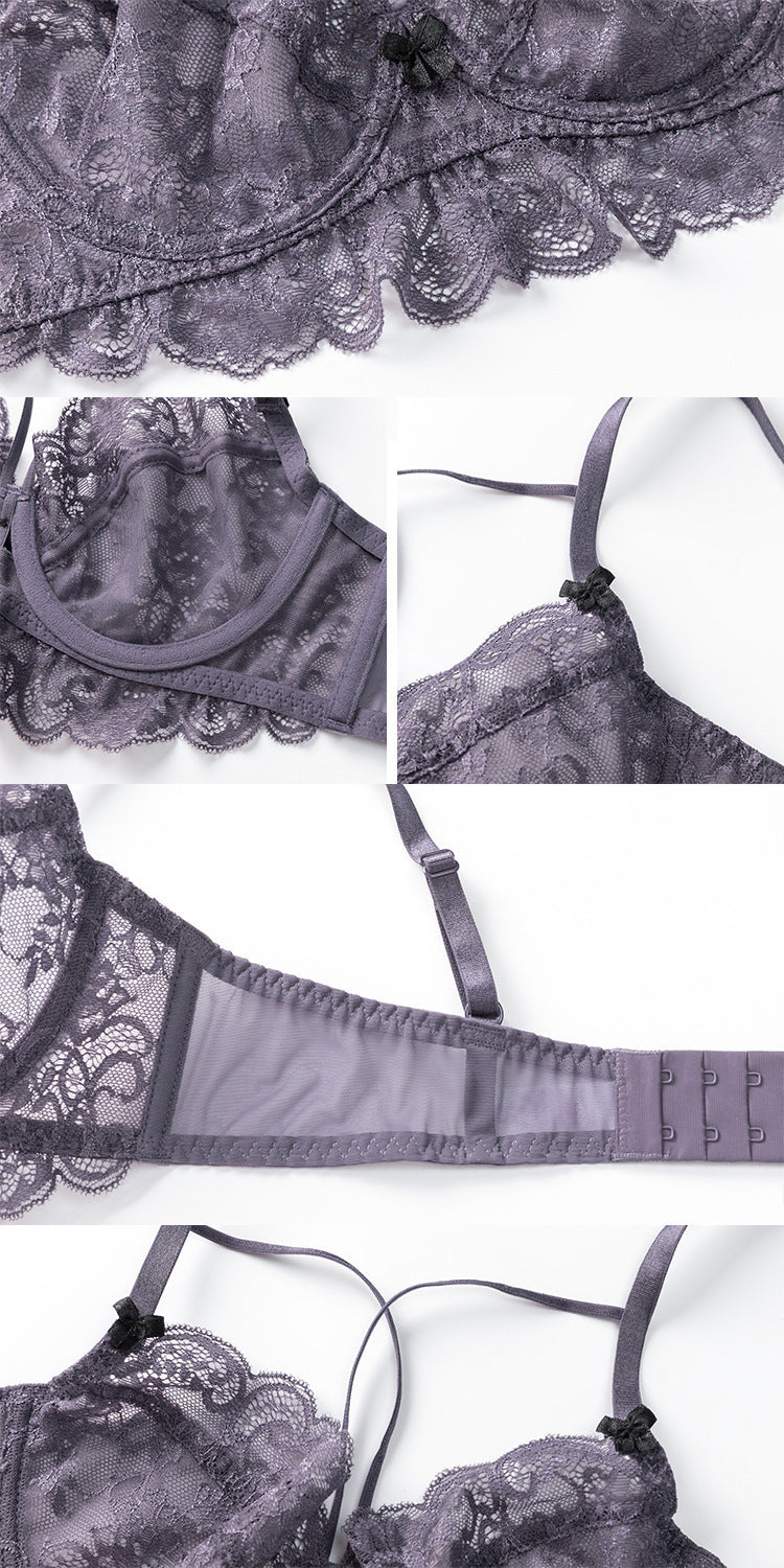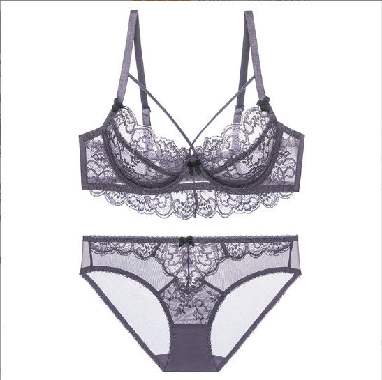 性感蕾丝超薄款透明无垫半杯乳罩文胸套装