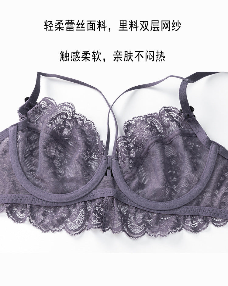 超薄蕾丝美背内衣女聚拢文胸套装透明舒适透气胸罩
