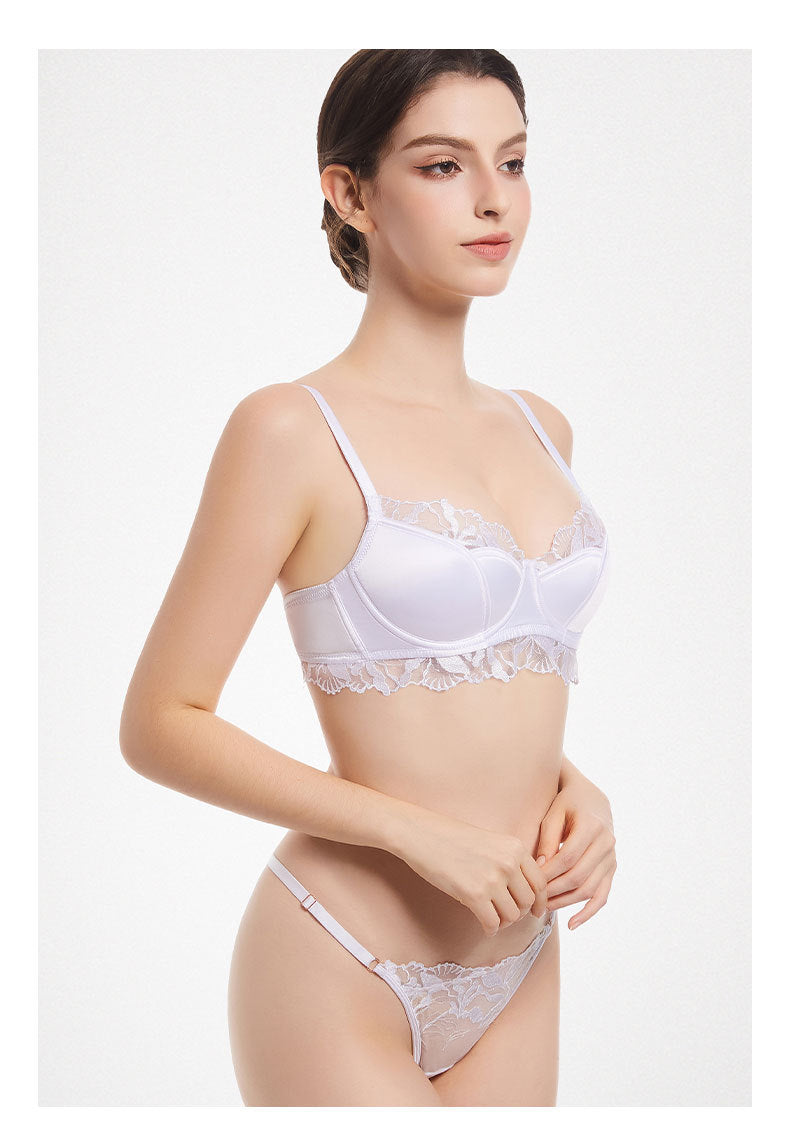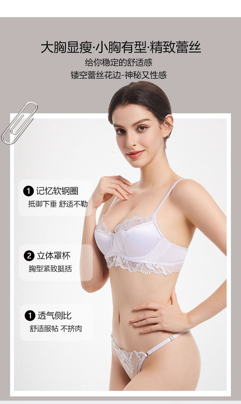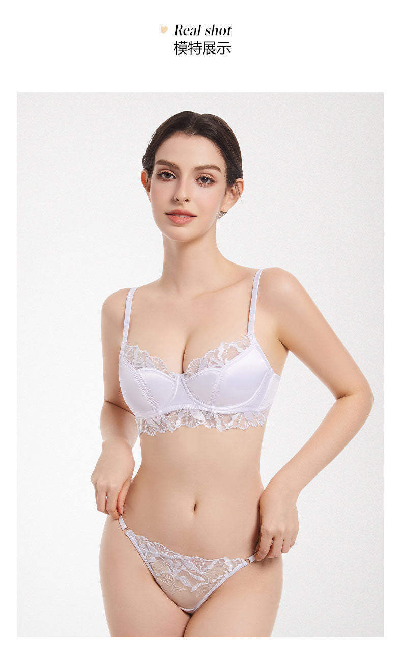 性感蕾丝超薄款透明无垫半杯乳罩文胸套装