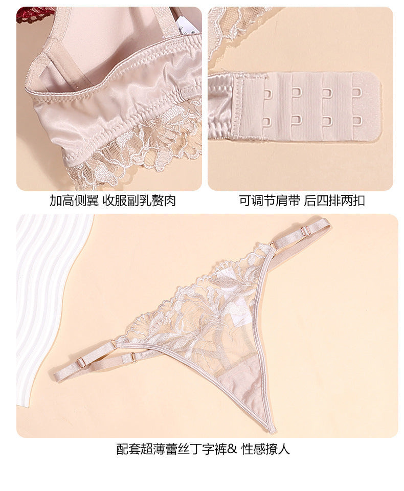 超薄蕾丝美背内衣女聚拢文胸套装透明舒适透气胸罩