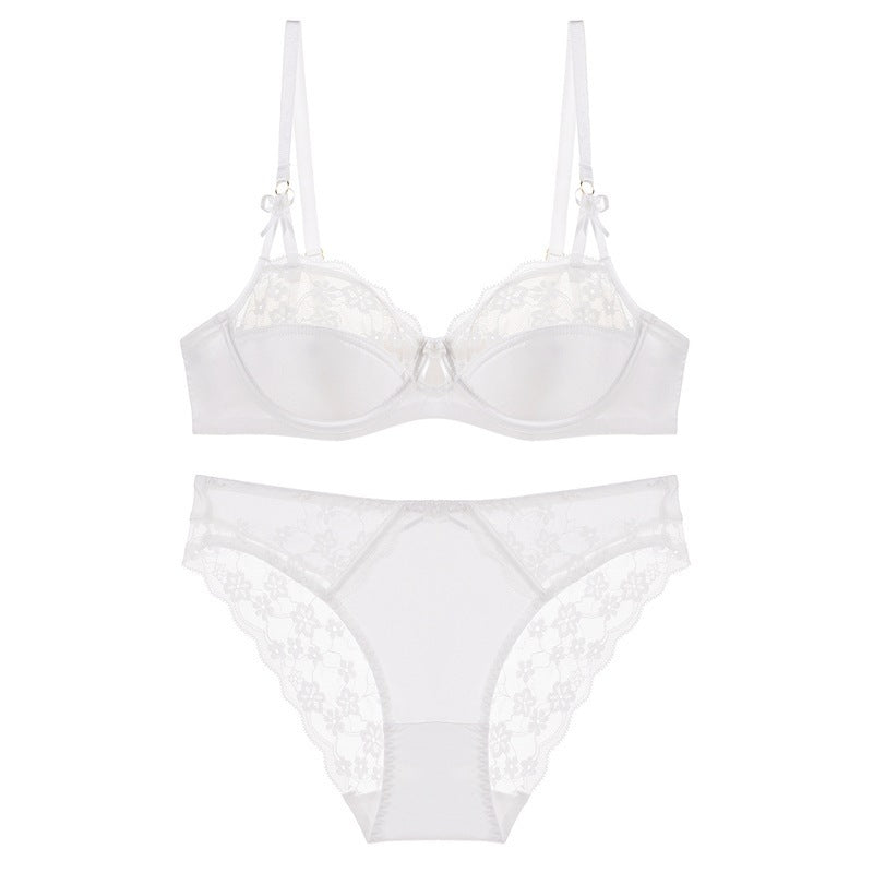 性感蕾丝超薄款透明无垫半杯乳罩文胸套装