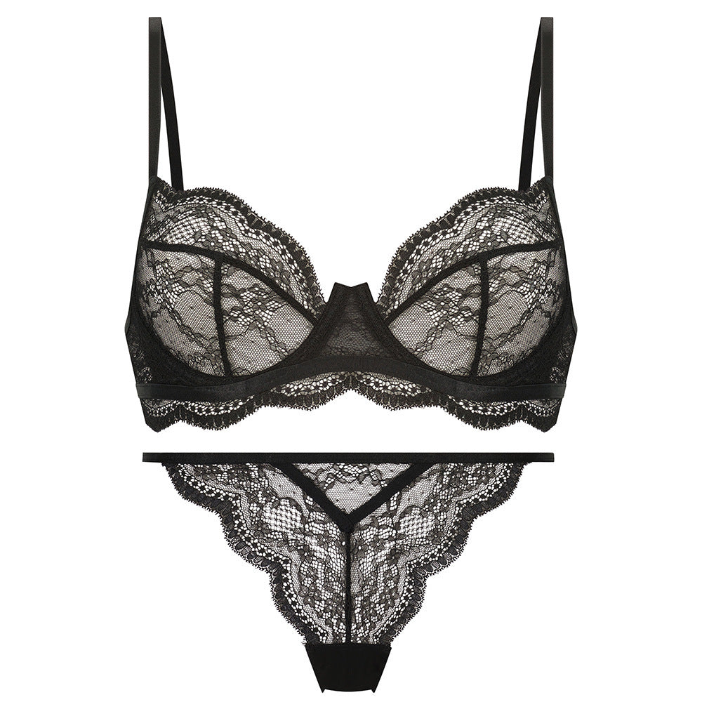 性感蕾丝超薄款透明无垫半杯乳罩文胸套装