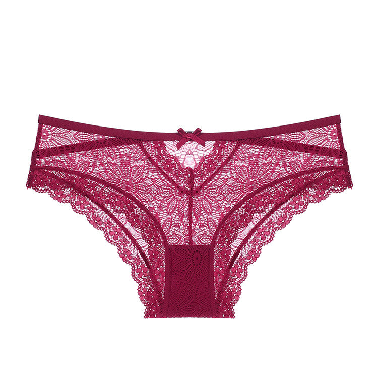 法式性感蕾丝超薄透气浪漫蝴蝶结舒适女士低腰三角内裤ランジェリー
