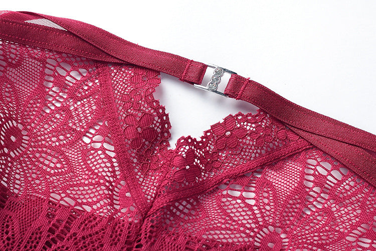 性感蕾丝内衣女小胸聚拢透气微塑身连体衣带文胸