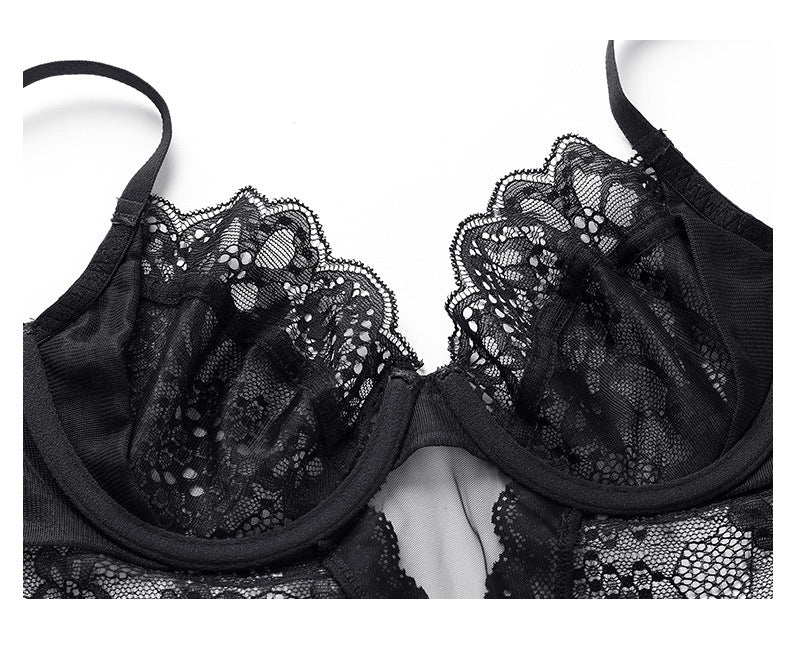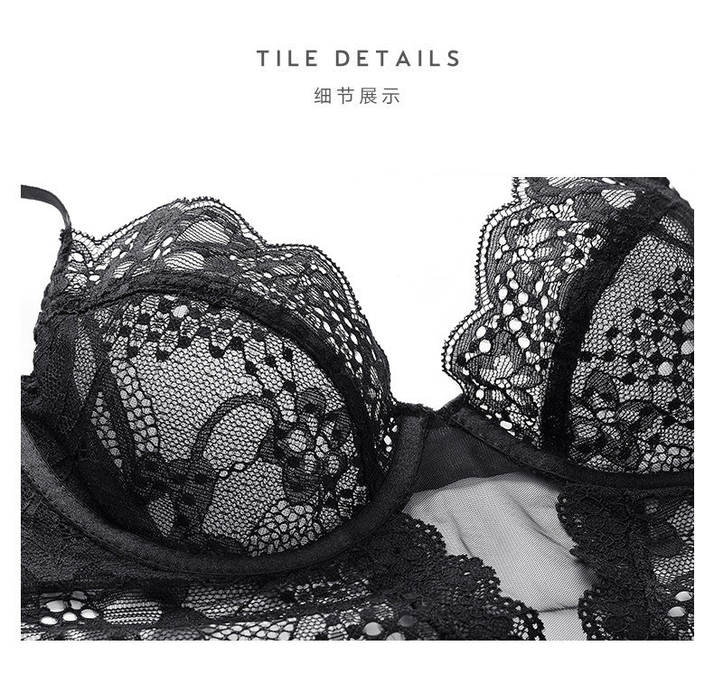 性感蕾丝超薄款透明无垫半杯乳罩文胸套装