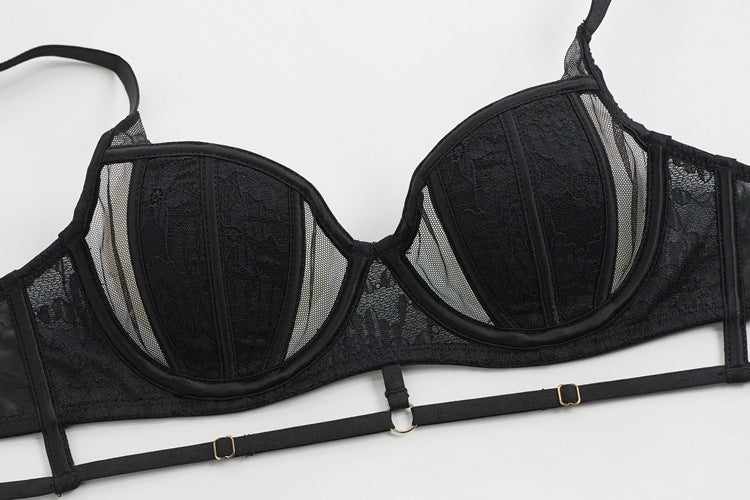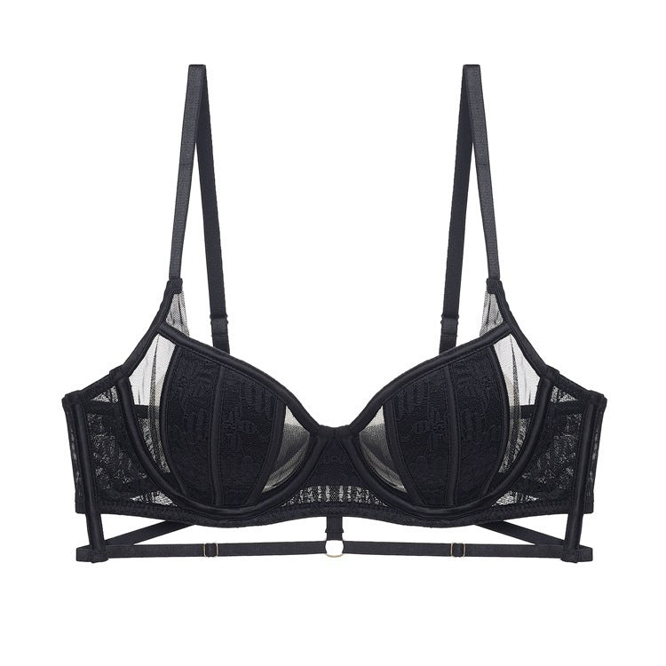 性感蕾丝超薄款透明无垫半杯乳罩文胸套装