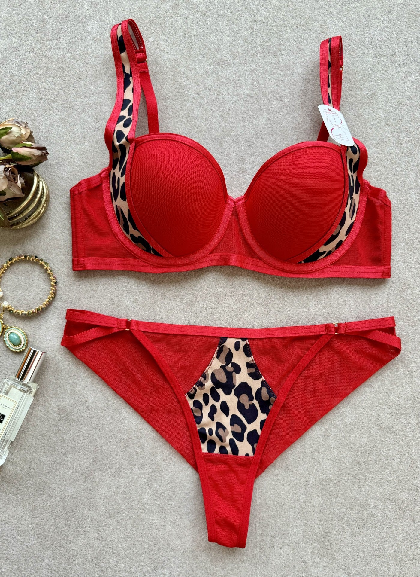 豹纹撞色小胸聚拢蕾丝内衣女士性感上托防下垂收副乳丁裤文胸套装ランジェリー